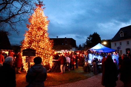 Schon morgens waren fleißige Helfer damit beschäftigt gewesen, Getränkewagen auszurichten, die Gulaschkanone der freiwilligen Feuerwehr in Stellung zu bringen, Pavillons aufzubauen, Lichterschmuck und Würstchenbrater zu verkabeln und vieles mehr. Pünktlich um 17.00 Uhr war alles fertig und der kleine Lunapark schien schier aus den Nähten zu platzen, als Reimund Heringer, der 1. Vorsitzende des Gemeinnützigen Vereins, die Eröffnungsansprache hielt und die Anwesenden mit kurzen, herzlichen Worten begrüßte und den vielen freiwilligen Helfern für ihre Arbeit dankte.