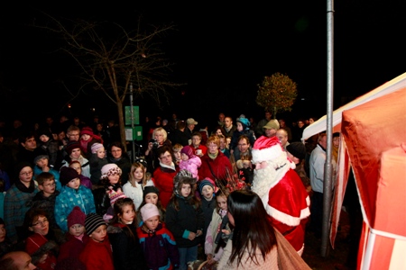 Und als wäre er von Düften und Musik angezogen worden, dauerte es nicht lange, bis der Nikolaus mit großem Sack und vielen Geschenken für die Jüngsten um die Ecke bog und am Lunapark Station machte. Er beschenkte viele der kleinen Gäste, die mit großen Augen den Mann im roten Mantel und mit seinem weißen Bart bestaunten.