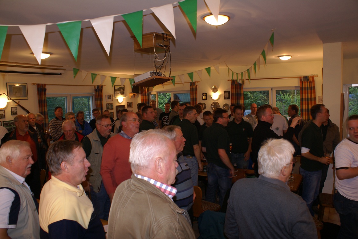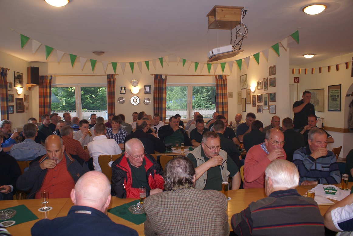 Mit Spannung und großer Vorfreude machten sich die Mitglieder des erweiterten Vorstands am 19. Juli 2012 auf den Weg zum Schießstand am Brecher. Die letzte Arbeitssitzung vor Schützenfest stand auf dem Programm und traditionell ließen sich die Schützen nicht zweimal bitten. Reiner Schenk eröffnete die Sitzung mit Begrüßung der rekordverdächtigen 81 anwesenden Schützen und gab das Wort dann an die Kommissionsleiter weiter. Mit kurzen und knappen Worten gaben sie grünes Licht für das bevorstehende Schützenfest. Eine besondere Aufgabe übernahm als letzter der Geschäftsführer Jürgen Schenk. Er überreichte König Mike Hinze die Königsprämie in Höhe von 1.000,00 €!
