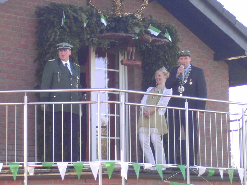 In einem spannenden und zähen Schießwettkampf holte er mit dem 84. Schuss die Reste des von den 4 übrigen ernsthaften Königsaspiranten übriggelassenen Rumpfes von der Stange. Bereits um 16.10 Uhr hatte er den rechten Flügel abgeschossen. Mike Radermacher tat es ihm 40 Minuten später mit dem rechten Flügel gleich. Bei strahlendem Sonnenschein verfolgten mehr als 300 Schaulustige den Wettbewerb auf dem Platz vor der Schützenhalle.