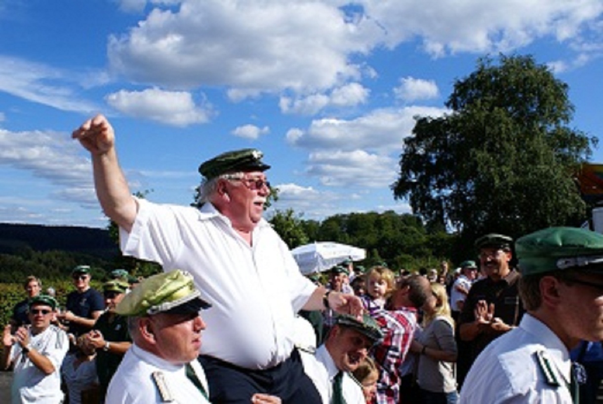 Der Ehrenvorsitzende Udo Herrmann bewies erneut seine Treffsicherheit und Nervenstärke und holte den Königshattrick. Nach 1982 und 1987 regiert er nun zum dritten Mal das Müllenbacher Schützenvolk.