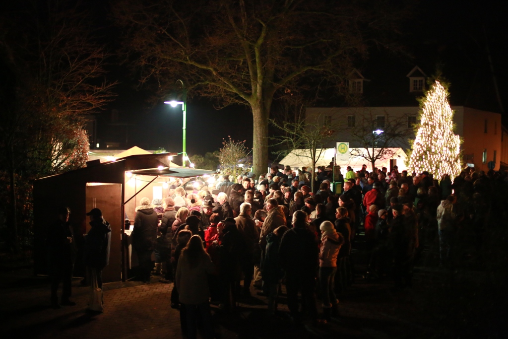 Nach der Ansprache war der Verkauf an den geschmückten Ständen eröffnet. Wer die leckeren Pizzawaffeln oder die duftenden Bratwürste des Gemeinnützigen Vereins genossen hatte, konnte sich am Stand des Schützenhofs seiner Majestät Udo Herrmann mit gehaltvollem Glühwein verwöhnen lassen. Obwohl die Temperaturen schon unter dem Gefrierpunkt waren, konnten auch kühle Getränke beim Schützenhof erstanden werden. Am großen Zelt des Fördervereins der Gemeinschaftsgrundschule gab es eine Menge Köstlichkeiten, die von selbstgebackenen Plätzchen über handgemachte Trüffel bis zu köstlichen Likören nach alten Familienrezepten reichten. Und natürlich wurde auch wieder viel Selbstgebasteltes zur Weihnachtszeit feilgeboten. Die Löschgruppe Dannenberg-Müllenbach der Freiwilligen Feuerwehr informierte über neueste Rauchmeldertechnik und bot an ihrem Stand Löschspray an. Der TV-Rodt-Müllenbach verkaufte T-Shirts mit Vereinsaufdruck und man konnte durch eine Spende seine Solidarität für den Erhalt der Sporthalle in Rodt ausdrücken. Es dauerte auch nicht lange, bis der Nikolaus mit seinem Schlitten und in Begleitung des Christkindes um die Ecke bog. Beide verteilten Geschenke an die jüngsten Festbesucher.