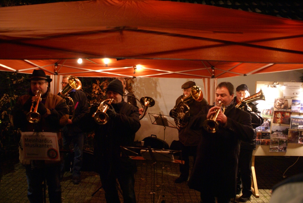 In ihrer Ansprache blieb keiner der beteiligten Vereine unerwähnt und sie würdigte besonders die Bedeutung ehrenamtlicher Arbeit für die Vereine in unserer Gesellschaft. Gerade für Kinder und Jugendliche können Vereine mit ihren vielen gemeinschaftlichen Aktivitäten ein wertvolles Freizeitangebot bieten. Anke Bockelmann schloss ihre Ansprache mit einem kleinen Weihnachtsgedicht, das daran erinnern sollte, dass neben dem, was Läden und Geschäfte bieten, besonders die Zeit füreinander ein kostbares Geschenk ist. Anschließend spielten die Meinhardus-Musikanten aus Meinerzhagen mit ihren Blasinstrumenten alte Weihnachtslieder und gaben so dem Lichterkettenfest einen weihnachtlichen Rahmen.