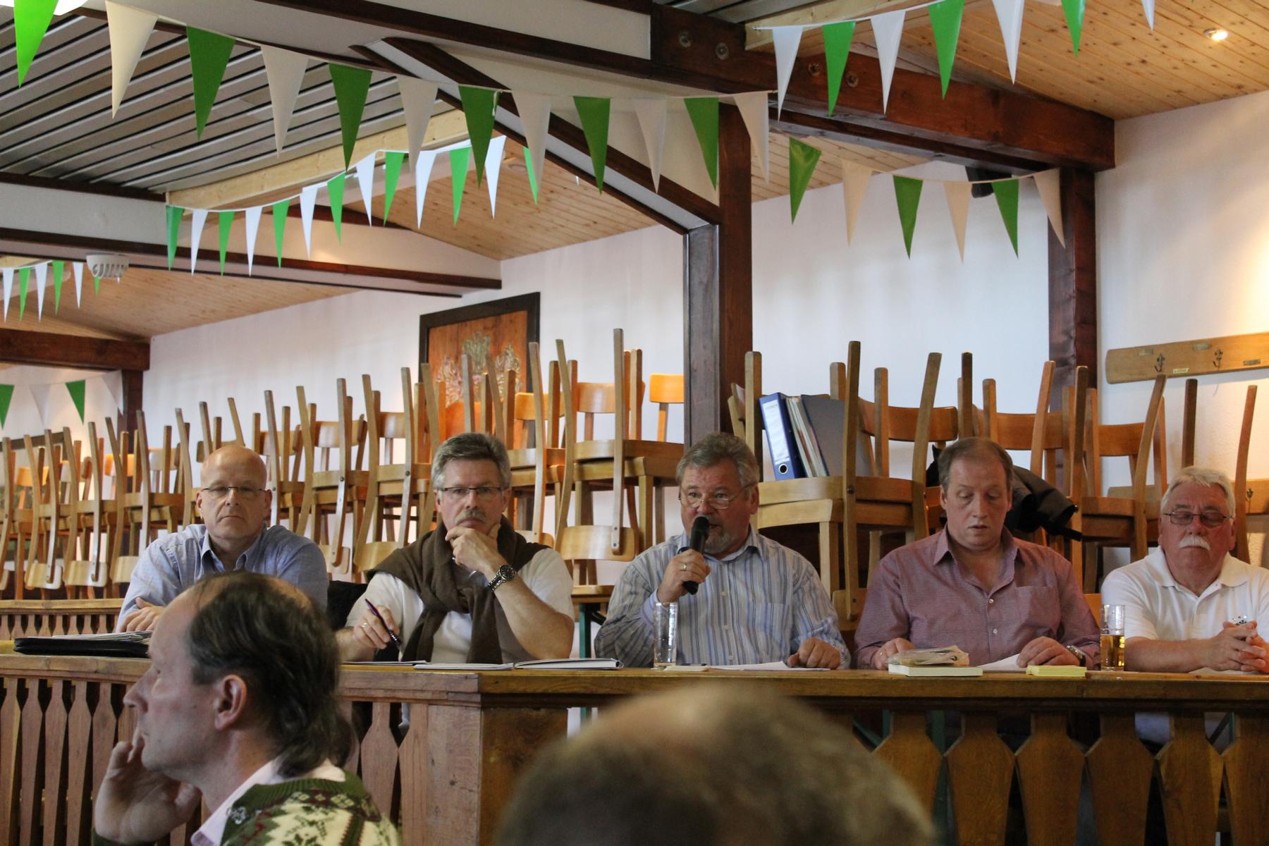Ein wesentlicher Tagesordnungspunkt der diesjährigen Generalversammlung war der Antrag des Vorstands, den Beitritt des Vereins beim Oberbergischen Schützenbund zu beantragen. Der Antrag wurde mit zwei Gegenstimmen und vier Enthaltungen angenommen. Dieser Beschluss ist damit das Ergebnis eines nahezu zweijährigen Entscheidungsprozesses. Die Generalversammlung 2012 hatte den Vorstand nach längerer Diskussion beauftragt zu prüfen, ob ein Beitritt zum Oberbergischen Schützenbund empfehlenswert sei. Die Recherchen haben dann gezeigt, dass unter den heutigen gesellschaftlichen und politischen Bedingungen ein Schützenverein ohne eine Zugehörigkeit zu einem Dachverband nur mit großen Schwierigkeiten bestehen kann. Die Neuanschaffung von Waffen, die Abnahmen des Schießstands und der Vogelstange durch die Kreispolizeibehörde, die Versammlungsstätten-Verordnung , die Auflagen der GEMA sind nur einige Bereiche für die eine Mitgliedschaft in einer übergeordneten Organisation von Vorteil ist und die Vereinsarbeit auf Dauer rechtssicher macht. Die zuständigen Behörden setzen bei der Erteilung von Genehmigungen die Zugehörigkeit zu einer anerkannten Organisation voraus. Auf der anderen Seite hat die bekannte Diskussion um die verordnete Herabsetzung der Größe der Schützenvögel in den letzten Monaten gezeigt, dass die Vereine gemeinsam sehr wirkungsvoll ihre Interessen gemeinsam vertreten können. Die Notwendigkeit eines Beitritts hatte der Vorstand bereits in der erweiterten Vorstandssitzung am 15. März mit Hilfe einer Tischvorlage als Diskussionsgrundlage vorgestellt und das einstimmige Votum für einen Beitritt zum Oberbergischen Schützenbund der aktiv im Verein arbeitenden Schützenbrüder bekommen. Dieser Beschluss und die Verteilung der Tischvorlage während der Generalversammlung waren so überzeugend, dass bei den Schützen keine Notwendigkeit für eine erneute Diskussion erkannt und der Beschluss quasi „durchgewunken“ wurde. Der Vorstand hat es damit geschafft eine für den Verein wichtige Entscheidung für alle Vereinsmitglieder offen, transparent und überzeugend herbeizuführen.