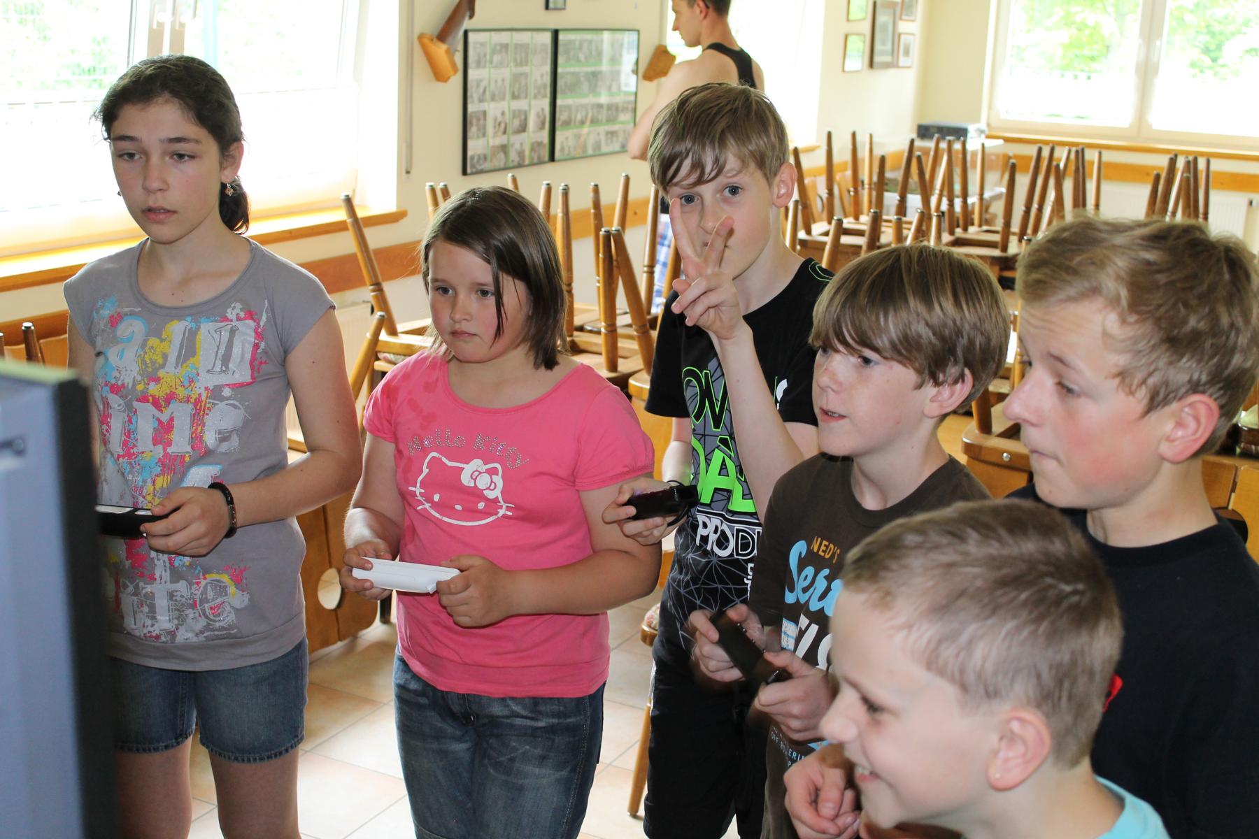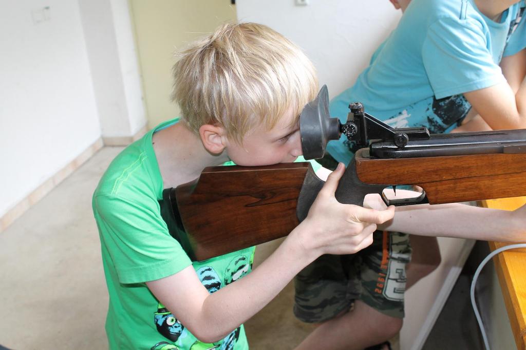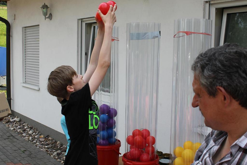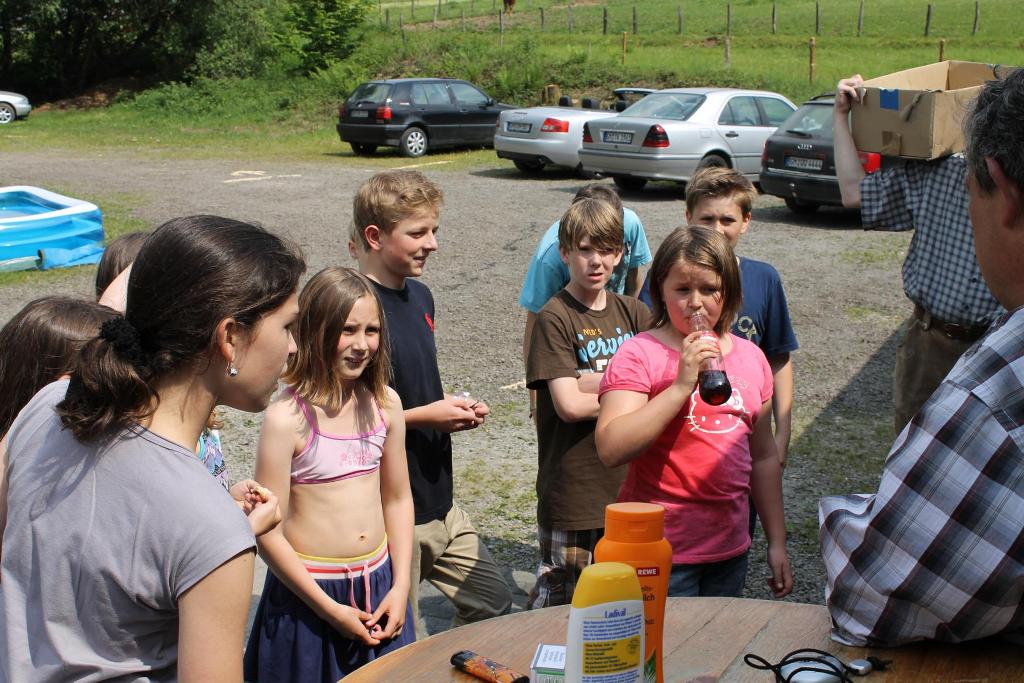 Mit ausgelassener und guter Stimmung fand am Samstag, den 08.06.2013 das diesjährige Kinderhoffest rund um den Schießstand „Am Brecher“ statt. Das gute und warme Wetter hat zum Gelingen des Nachmittages beigetragen. 13 Jungen und Mädchen waren der Einladung der Kinderfestkommission rund um Kommissionsleiter Andreas Kühnel gefolgt und lieferten sich gleich zu Beginn eine heftige Wasserschlacht. Die zahlreichen Wasserpistolen wurden am vorbereiteten Pool geladen und dann hieß es nur noch: „Jeder gegen Jeden!“. Nach der ersten Erfrischungen konnten und mussten die Kinder dann ihre Geschicklichkeit unter Beweis stellen. In drei Gruppen aufgeteilt galt es, u.a. zu Balancieren, die Kräfte beim Tauziehen zu messen oder die Treffsicherheit beim Dosenwerfen und Luftgewehrschießen umzusetzen. In den Pausen wurde die Wii-Station im Schießstand ausgiebig genutzt. Als Belohnung für die anstrengenden Spiele gab es von König Udo Herrmann nach den Wettkämpfen eine Extraportion Eis, die von allen Beteiligten dankbar angenommen und vernichtet wurde. Zum Abschluss wurde noch ein bunter Vitamin-Cocktail an alle verteilt. Axel Rauin hatte im Auftrag des Schützenvereins farbenfrohe Obstschalen zusammengestellt. Fazit: Eine rundum gelungene Veranstaltung für den Nachwuchs unseres Schützenvereines. Vielen Dank an alle Beteiligten!