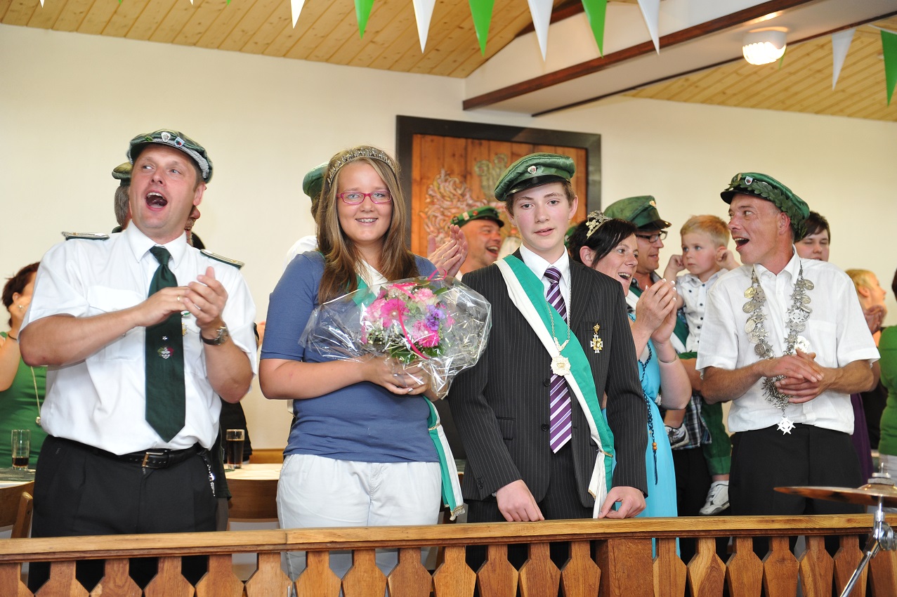 Um 17.00 Uhr krönten seine Majestät König Mike I. und Königin Miriam das Kinderkönigspaar: Marvin Müller und seine Königin Caren aus dem Hause Machinek. Man konnte nicht sagen, ob die Augen der Kinder oder das Diadem der Kinderkönigin mehr strahlten. Für alle war die Zeremonie wieder ein weiterer schöner Höhepunkt des Festes.