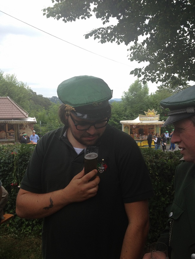 Da staunte unser Hauptmann beim Frühschoppen des Gummersbacher Schützenfestes nicht schlecht. Trug der nette junge Schützenbruder ein Shirt mit einem goldenen Stern oberhalb des Vereinswappens. Dieser dezente Schmuck darf nur von amtierenden oder Ex-Majestäten getragen werden. Der Hauptmann war sich sicher: der junge Mann war nicht König Mike II und auch nicht eine Majestät der letzten 457 Jahre. Ein Hochstapler im Schützenverein Müllenbach? Nein, das kann nicht sein. Das Rätsel löste sich jedoch schnell. Der Schützenbruder hatte versehentlich am Morgen das Hemd seines Vaters aus dem Schrank gegriffen. Dieser war nämlich 1991/1992 Schützenkönig in Müllenbach. Die Strafe folget auf dem Fuß: der Unglücksrabe musste das Hemd ausziehen und eine Strafpredigt unseres wortgewandten Hauptmanns über sich ergehen lassen. Diese wird er nimmer vergessen! Natürlich galt auch in dieser Situation, dass wer den Schaden hat für den Spott nicht zu sorgen braucht.