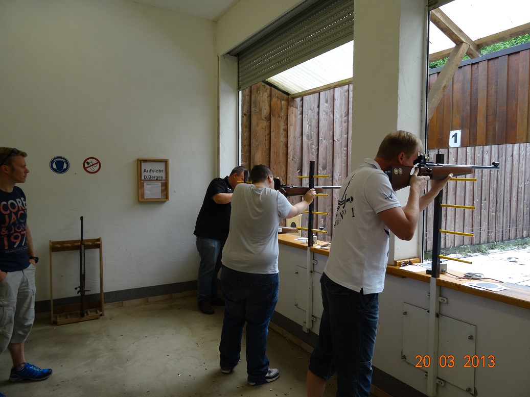 Am 3. Sonntag des diesjährigen Preisschießens herrschte reger Betrieb. Das warme sommerliche Wetter ließ viele Vereinsmitglieder und ihre Familien zum Schießstand kommen. Eine besondere Attraktion war dabei für die Kinder ab 6 Jahre das vom OSB zur Verfügung gestellte und betreute Lichtpunktgewehr. Die Kinder geben keinen scharfen Schuß auf 10 m Entfernung ab, sondern einen Lichtstrahl. Dieser trifft auf eine spezielle Zielscheibe, die auf elektronischem Weg das Ergebnis auf einem neben dem Schützen stehenden Computer anzeigt. Dank der Unterstützung von Thomas Wagner vom OSB hatten die Kinder viel Spaß und entwickelten ziemlichen Ehrgeiz, um ein treffsicherer Schütze zu werden. Auch auf den Kleinkaliberbahnen lagen Glück und Frust teilweise nur 2 Ringe auseinander. Engagiert wurde um die Verbesserung der Platzierungen in der Gesamtwertung gekämpft. Peter Wolter und sein Team sorgten dafür, dass Leib und Seele durch die gute Bewirtung zusammengehalten wurden. Der Vorstand und die Schützenbrüder der Schießkommission freuten sich über den gelungenen Sonntag. Bleibt zu hoffen, dass der ein oder andere aus den fröhlichen Runden sich doch entscheidet in diesem Jahr auf den Königsvogel zu schießen.