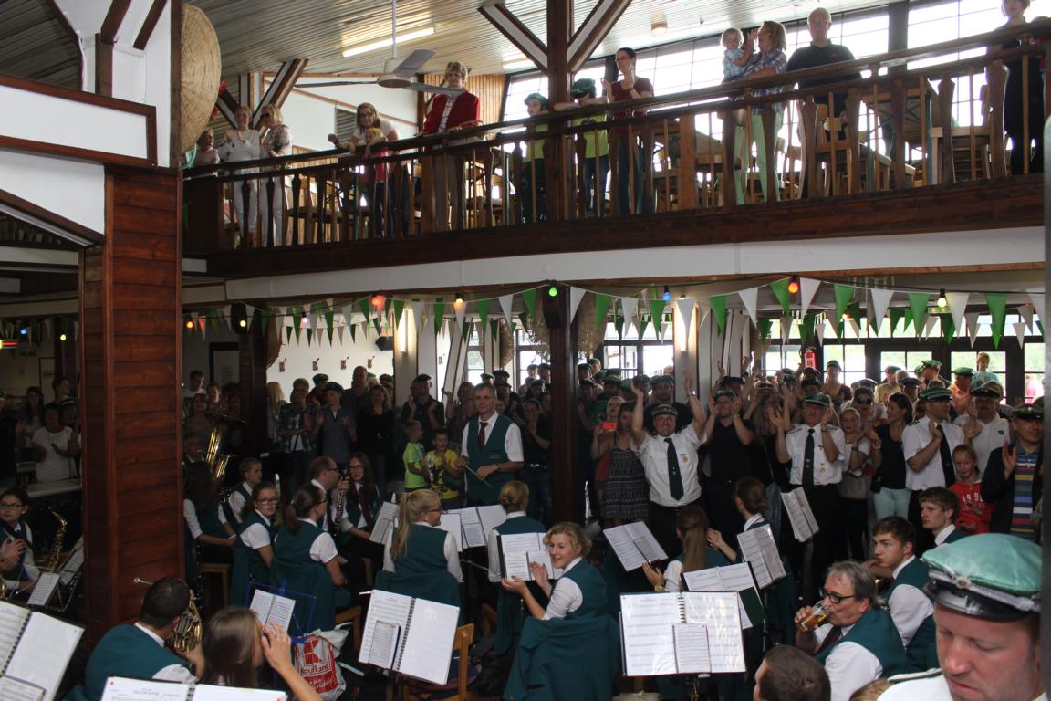 Das Zitat „jeder Schuss ein Treffer“ spiegelte den Verlauf des Wettkampfs sprichwörtlich wieder. Bereits nach 20 Minuten verlor der Habicht durch einen Schuss von Reiner Raymund seinen Kopf. Auch die Flügel wurden innerhalb der nächsten 8 Minuten vom Rumpf getrennt. Schützenhauptmann Matthias Pack halbierte später den verbleibenden Corpus und ließ Dirk Schenk einen kleinen Holzrest im Kasten, den dieser hochkonzentriert und mit eisernen Nerven traf.