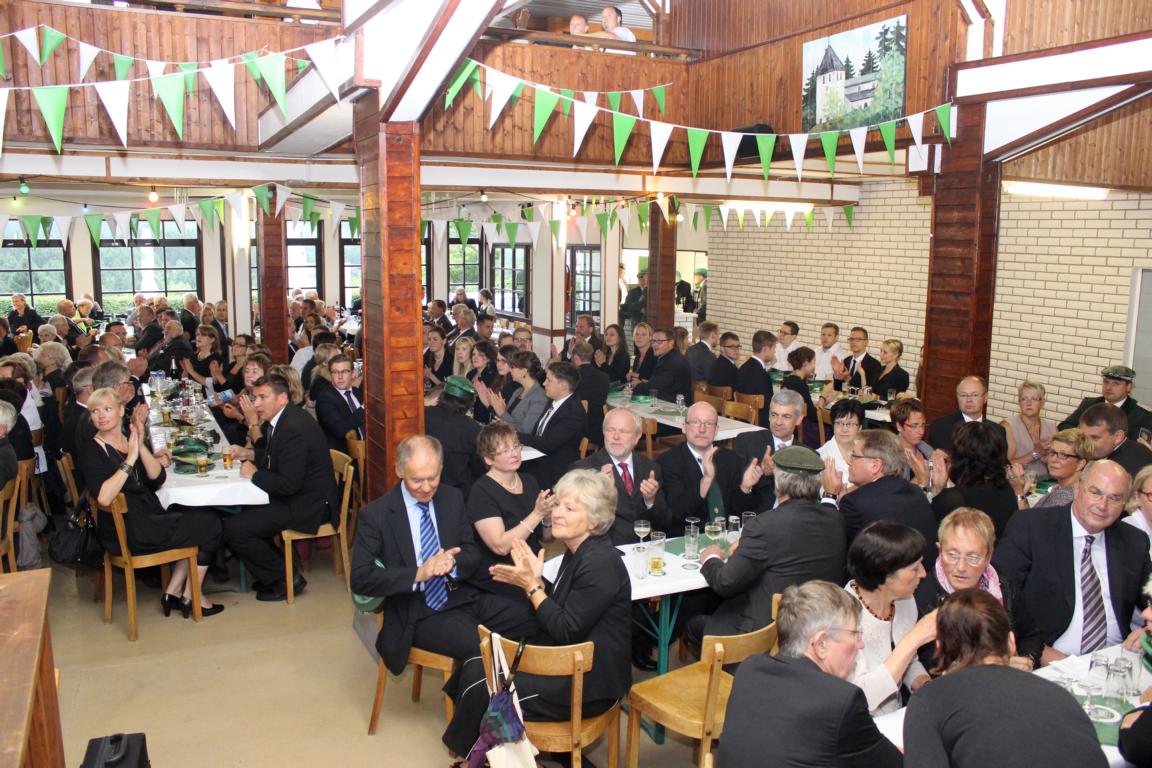 Der in der bestens besetzten Schützenhalle stattfindende Kommers war reich an Höhepunkten. Neben den obligatorischen (Ehren-) Gästen erlebten die Anwesenden eine Premiere: mit Jannik Massolle und Fabienne Wirth war erstmals das amtierende Kinderkönigspaar beim Kommers anwesend.