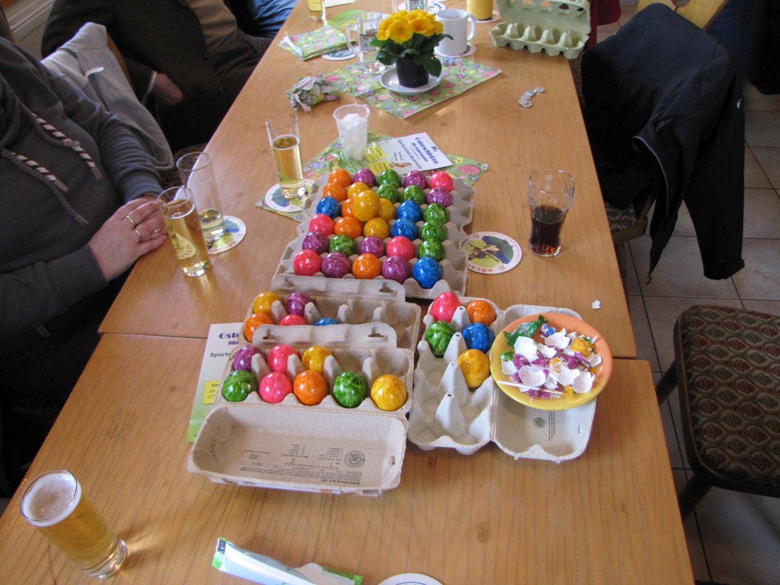 Zum Saisonauftakt 2016 fand am Sonntag vor Ostern das schon traditionelle „Ostereierschießen“ statt. Rund eine Woche nach der erweiterten Vorstandsitzung war der Schießstand „Am Brecher“ wieder Anlaufpunkt für die Aktiven des Müllenbacher Schützenvereins. Egal ob Jung oder Alt, Mann oder Frau – jeder hatte die Chance mit einer ruhigen Hand und scharfem Auge eine möglichst hohe Punktzahl zu erreichen. Auch Schießneulinge wurden herzlich willkommen geheißen und in die Kunst des richtigen Schießens eingewiesen. Die Punktzahl wurde anschließend ausgewertet und in Naturalien in Form von bunten Ostereiern umgerechnet. So war es letztendlich logisch, dass die ohnehin schon dekorativ gestalteten Tische weiteren farbenfrohen Schmuck erhielten. Mit strahlenden Augen kamen die erfolgreichen Schützinnen und Schützen mit ihren Trophäen zu ihren Tischen zurück und drapierten diese zwischen Kaffee, Kuchen oder leckeren Kaltgetränken. Über 70 Schützen haben sich in die Schießlisten eingetragen und sorgten mit ihrer guten Laune und dem entsprechenden Ehrgeiz für eine gelungene Veranstaltung, die von der Schießkommission sehr gut organisiert und durchgeführt wurde.