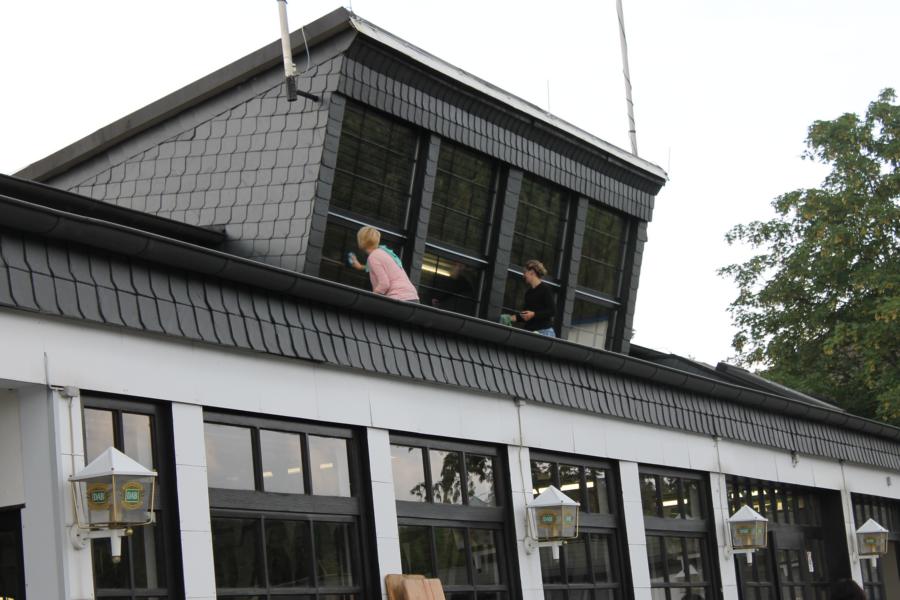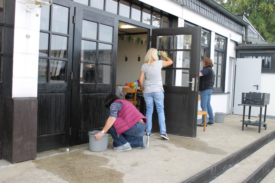 Es ist wieder soweit. Eine Woche vor Schützenfest trafen sich der Vorstand, der Hofstaat und die Hallenkommission samt Ehefrauen und Lebensgefährtinnen an der Schützenhalle, um diese für das anstehende Schützenfest zu putzen und zu dekorieren. Die vielen Helfer und Helferinnen sorgten dafür, dass alle Stühle und Tische an Ort und Stelle stehen. An der einen Stelle wurde noch geschweißt, an der anderen Stelle fleißig geschraubt. Natürlich erfreute auch der Blick durch die frisch geputzten Fenster. Am Schießbunker liefen die Vorbereitungen für das berühmt-berüchtigte Stoppenschießen. Es wurde gemäht und gefegt – überall gab es etwas zu tun. Schließlich wurden die Tische für den Seniorenkaffee eingedeckt und das farbenfrohe Ambiente lässt die Vorfreude auf das kommende Schützenfest weiter steigen. Nach so viel Arbeit durfte natürlich auch die Stärkung mit kühlen Getränken und leckeren Steaks und Würstchen vom Grill nicht fehlen. Allen Aktiven sei herzlichst gedankt – Horrido auf das Schützenfest 2016!