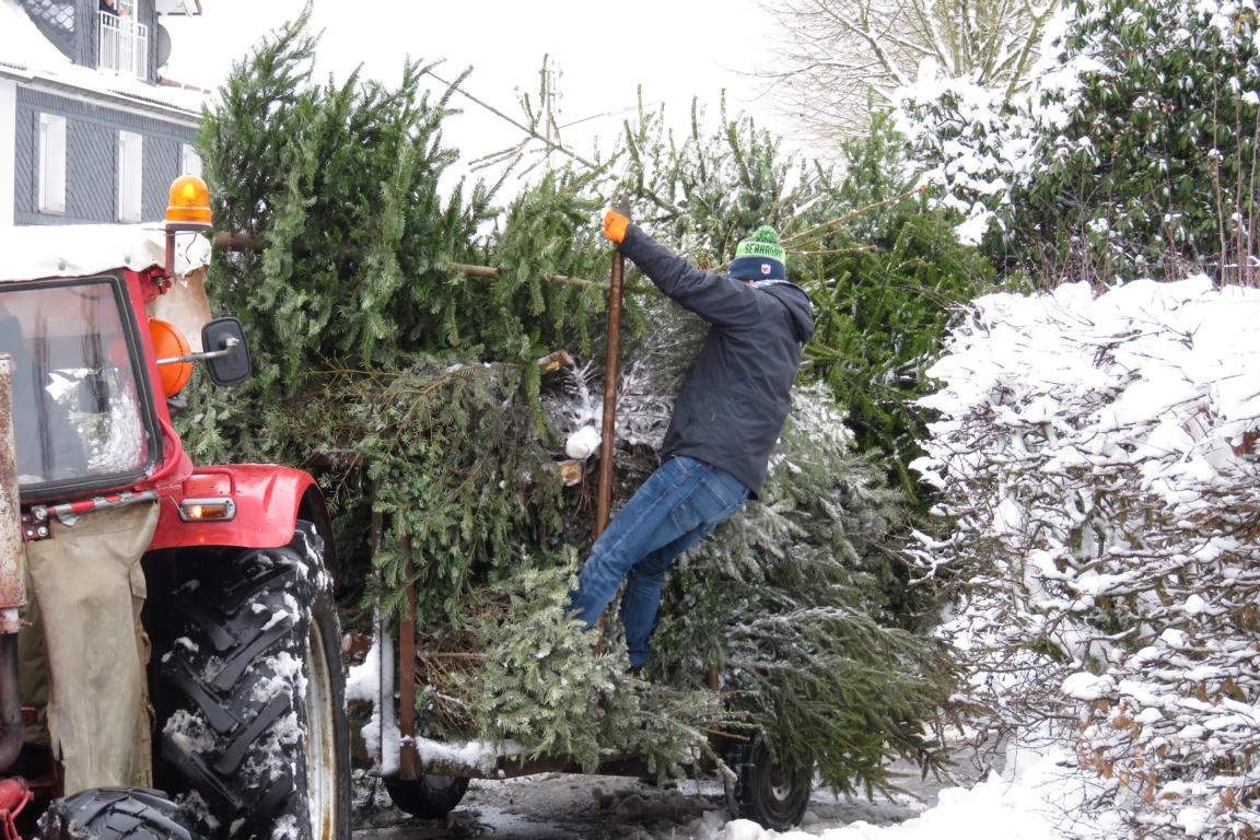 Weihnachtsbaumaktion bei Schnee und Eis