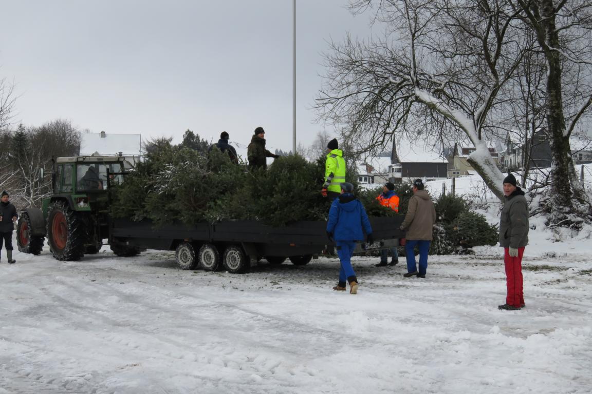 Kalt war es bei der Weihnachtsbaum-Sammel-Aktion des Schützenvereins Müllenbach öfters, im letzten Jahr waren die Temperaturen sogar frühlingshaft. Eine Premiere hatten daher Eis und Schnee bei der am vergangenen Samstag im Kirchdorf durchgeführten Entsorgungsmaßnahme. Teilweise mussten die Bäume aus dem Schnee herausgeschaufelt werden. Viel Muskelkraft war beim Aufladen aufzuwenden, weil die Bäume teilweise stark vereist waren und dadurch mehr Gewicht auf die Waage brachten. 35 Schützenbrüder waren im Dorf unterwegs. Paul Wernscheid und Peter Sturm hatten ihre Trecker mit Anhänger zur Verfügung gestellt, um den Abtransport der Christbäume zu ermöglichen. Ihnen ist für ihre Unterstützung des Vereins ebenso zu danken, wie seiner Majestät König Patrick I. aus dem Hause Berges, der sich mit nahezu allen Hofherren an der Aktion beteiligte. Spaß gab es trotz der Witterungsbedingungen genug. An vielen Häusern wurden die fleißigen Schützenbrüder mit hochprozentigen Kaltgetränken bewirtet. Die Spendenfreude der Haushalte war auch in diesem Jahr wieder sehr zufriedenstellend, so dass der Jugendarbeit des Vereins wieder ein nettes Sümmchen zur Verfügung gestellt werden kann. Nachdem die 135 Weihnachtsbäume abgeladen waren, konnten sich die Schützenbrüder in einem wohlig warmen Schießstand aufwärmen und mit einer von Volker Klucke, Mike Radermacher und Axel Wernscheid vorzüglich zubereiteten Erbsensuppe stärken. Schützenhauptmann Matthias Pack dankte allen für die Unterstützung der Aktion. Bleibt zu hoffen, dass auch im nächsten Jahr viele Müllenbacher Bürger daran denken, ihren Christbaum am zweiten Samstag im Januar an die Straße zu stellen und den Verein mit einer kleinen Spende für die Entsorgung zu danken.
