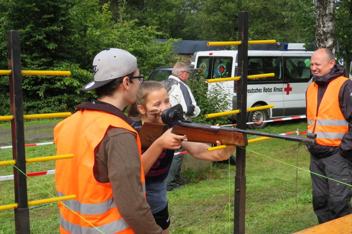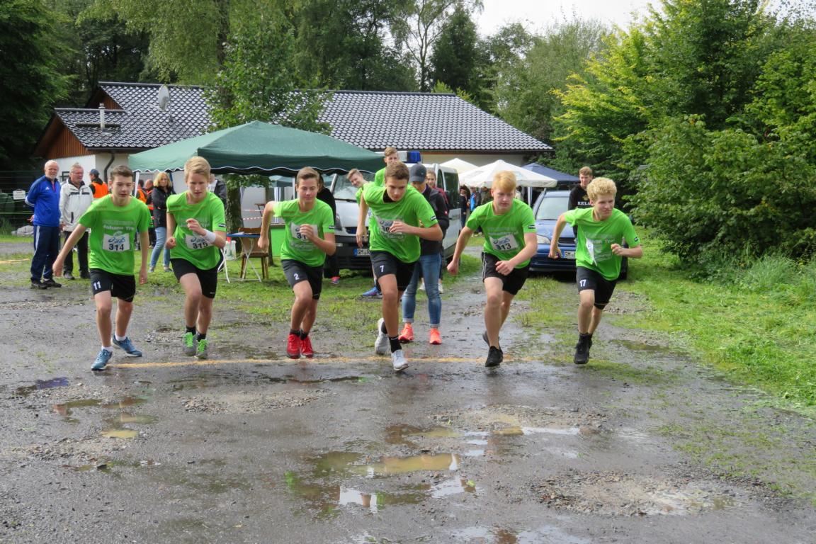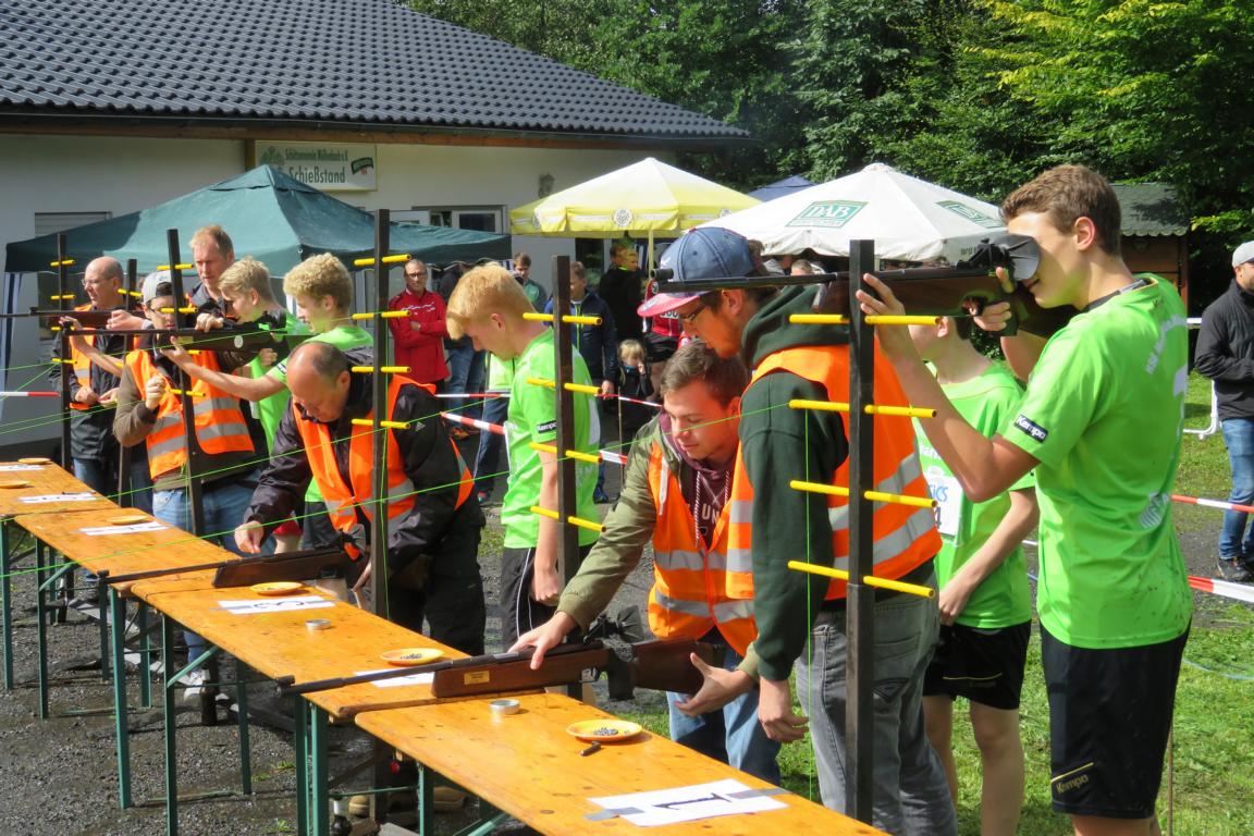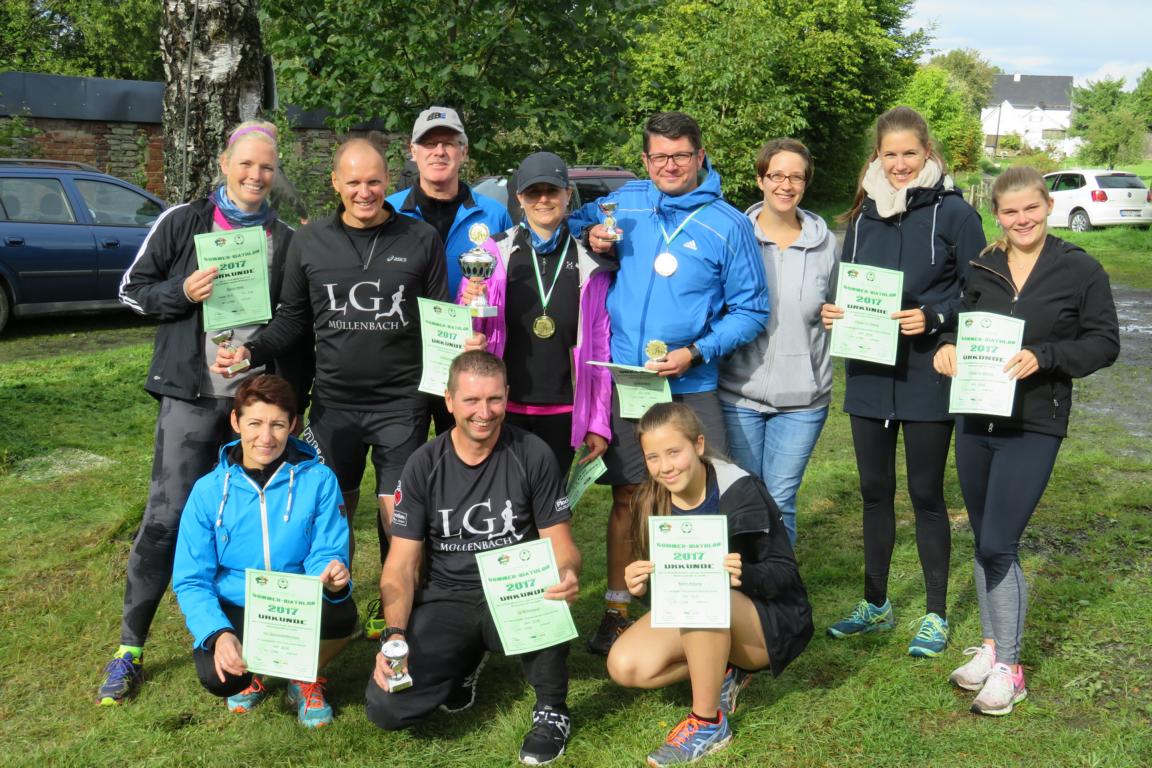 Bereits zum neunten Mal organisierten der TV Rodt-Müllenbach und der Müllenbacher Schützenverein den alljährlichen Sommerbiathlon rund um den Schießstand „Am Brecher“. In diesem Jahr wurde die Veranstaltung aber nur in Teilen seinem Namen gerecht. Dichte Bewölkung und niedrige Temperaturen ließen eher auf einen „Herbst-Biathlon“ schließen. Knapp 30 Aktive trotzen aber den widrigen Bedingungen und sorgen dafür, dass alle einen Nachmittag mit gesundem Ehrgeiz, viel Spaß und gegenseitigem Respekt erlebt haben. Der Wettkampf startete mit den Nachwuchsschützen und –sportlern in der Wettkampfgruppe „Männliche Jugend B und Jugend A. Ihnen folgte die erste Gruppe „M20“, die im Wesentlichen aus Handballern der ersten Mannschaft vom SSV Marienheide bestand, und die Veranstaltung als kleine Trainingseinheit für die Saisonvorbereitung genutzt haben. Nun folgte leider die erste Unterbrechung aufgrund des immer stärker werdenden Regens. Über eine halbe Stunde mussten die Läufer auf den Startschuss für nächste Runde warten. Zwischenzeitlich war der Regen so stark, dass es sogar Befürchtungen gab, dass die Veranstaltung im wahrsten Sinne des Wortes ins Wasser fallen würde. Die Ruhe und Geduld der Verantwortlichen wurden aber belohnt und die nächsten Gruppen konnten den Wettkampf fortsetzen. Unbeeindruckt von der Unterbrechung ging nun der spätere Tagessieger 2017 an den Start. Mit einem Streckenrekord von 10:48 Min sorgte Laurin Schenk für die diesjährige Topleistung, die mit gebührendem Applaus honoriert wurde. Auf den weiteren Plätzen folgten Philipe Ginczek (11:58) vor Maximilian Schaaf (11:59).