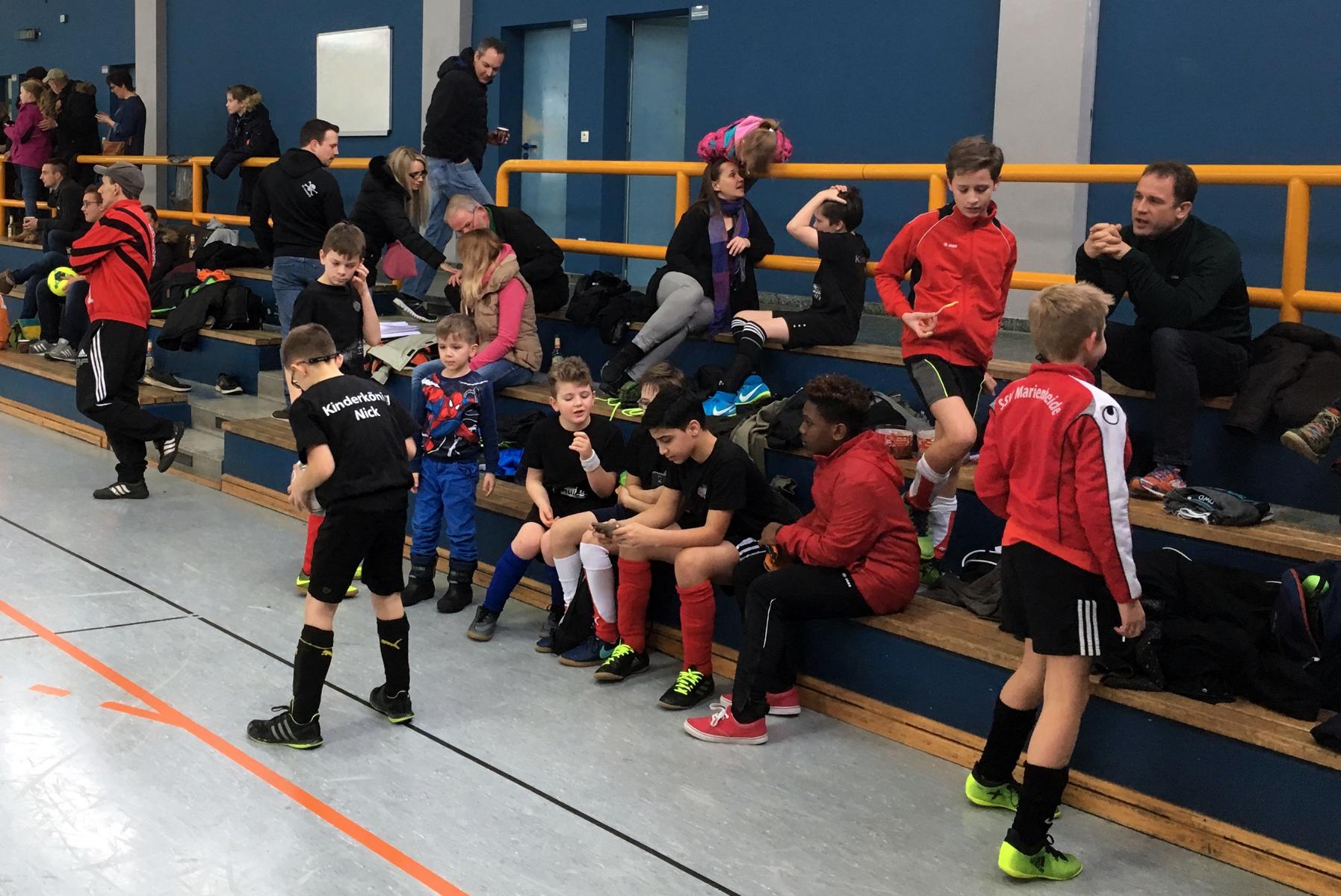 Die beiden Teams aus Müllenbach wurden königlich unterstützt. Zu Beginn des Turniers sprachen die amtierenden Majestäten Dennis und Steffi Montag den Spielern Mut zu. Am Spielfeldrand engagierte sich der Vorjahreskönig Patrick Berges und auf dem Spielfeld agierte u.a. der amtierende Kinderkönig Nick Leff. Weitere Eltern unterstützten die Nachwuchskicker und feuerten die Aktiven von der Tribüne aus an. Am Ende des Tages resümierte der Leiter der Kinderkommission, Torsten Klein, über eine gelungene Veranstaltung mit einem tollen Erfolg der eigenen Mannschaft(en).