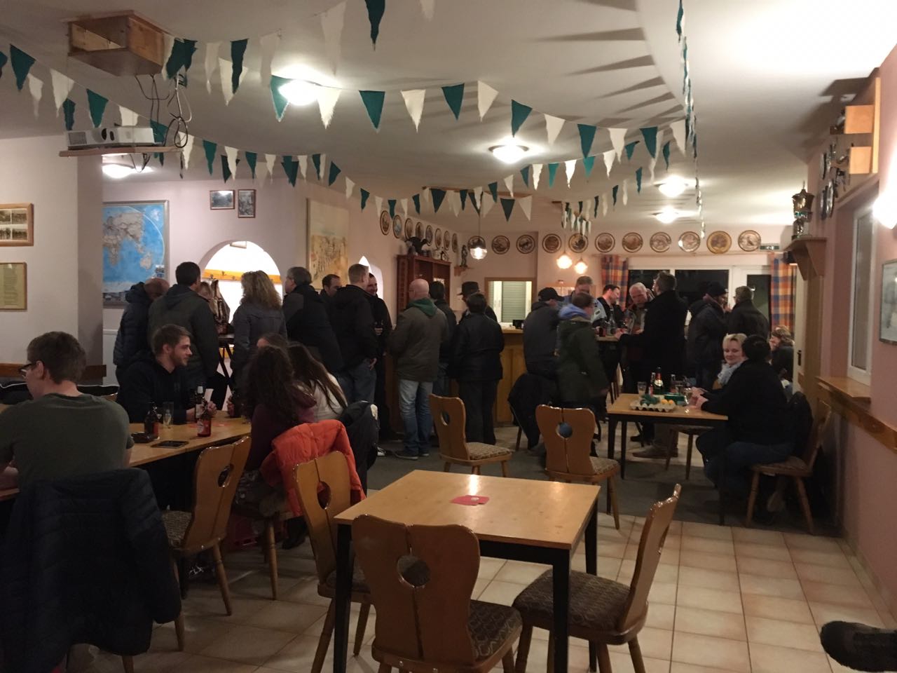 Gut besucht war das kleine Osterfeuer vor dem Schießstand am Ostersamstagabend. Über 60 Besucher scharten sich bei anfänglich noch klarem Himmel bis spät in den Abend um das wärmende Feuer. Die Kinder halfen gerne dabei unter Aufsicht Äste, Zweige und Stämme nachzulegen und hatten dabei eine Menge Spaß. Als es dann doch anfing zu regnen, fanden alle Schutz im Schießstand. Eine breite Auswahl an Kaltgetränken und Brühwürstchen standen zur Bekämpfung von Durst und Hunger zur Verfügung. Schnell waren alle Tische besetzt und so mancher blieb dann auch länger sitzen als ursprünglich vorgesehen.