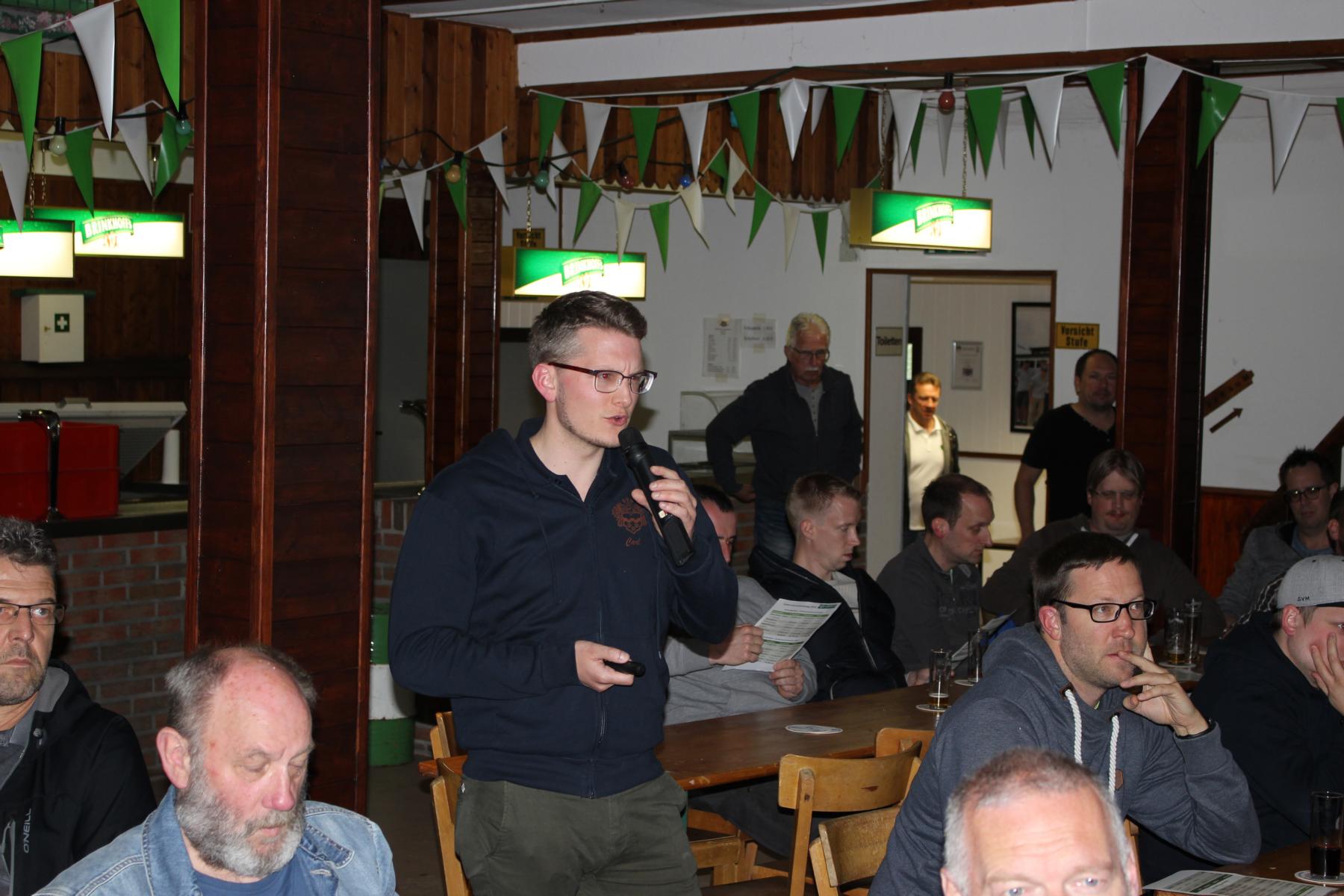 Die Versammlung wurde außerdem über die anstehenden Renovierungsarbeiten an der Schützenhalle und die Aufschotterung des Kirmesplatzes und des Weges zum Schießstand Am Brecher informiert. Den Abschluss des Geschäftsberichts stellte der Bericht der Kassenprüfer dar, der von Mark Haarhaus vorgetragen wurde. Die einwandfreie Kassenführung war dann Grundlage für den Antrag zur Entlastung des Vorstands, der einstimmig angenommen wurde. Thomas Pack wurde anschließend zum neuen Kassenprüfer für den ausscheidenden Derek Samen gewählt. Außerdem wurden Marius Schulz und Markus Dönitz in die Schießkommission und Nico Schneider in die Böllerkommission gewählt.