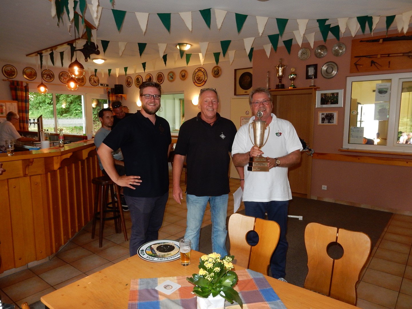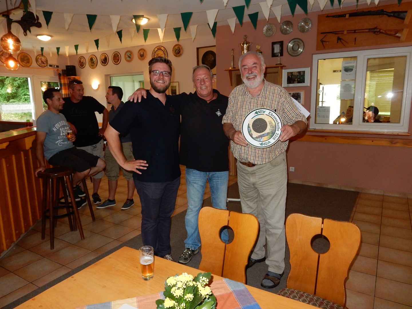 Beim Schuss auf die jeweils vom amtierenden König gestiftete Königsscheibe waren die besten Schützen: Adolf Linden (1. Platz), Jürgen Schenk (2. Platz) und Axel Wirth (3. Platz).