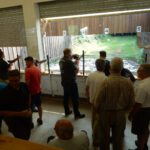 Bei herrlichstem Frühsommerwetter trafen sich am 1. Preisschießsonntag zwanzig ehemalige Schützenkönige und die amtierende Majestät Dennis I. am Schießstand „Zum Brecher“. Als „dienstälteste“ Majestät war Martin Altjohann aus Dannenberg zum Königstreffen gekommen, der bereits vor 50 Jahren Schützenkönig in Müllen­bach gewesen war. Gleich zu Beginn der gutgelaunten Versammlung präsentierte Jan Bierekoven mit der „Königsfahne“ eine neue Idee, um das Andenken an jeden einzelnen Müllenbacher Schützenkönig in farbenfroher und zum Schützenwesen passender Weise zu bewahren. So kann nun jeder König auf einer etwa 60 cm x 30 cm großen Fahne mit dem Müllenbacher Wappen und seinem Namen sowie dem Regentschaftsjahr ein bleibendes Erinnerungsstück erwerben, das später in Schieß­stand oder Schützenhalle an sein Jahr als Schützenkönig erinnert. Die Idee fand großen Anklang und Jan konnte kaum so schnell das Geld für die Fahnen einsammeln, wie Aufträge für neue Königsfahnen erteilt wurden. Anschließend ging es daran, den Königspokal zum Gedenken an den langjährigen 1. Vorsitzenden Siegfried Soennecken auszuschießen. Den hart umkämpften Wettbewerb gewann in diesem Jahr Ralf Schenk (Schützenkönig 1991) mit 25 Ringen.