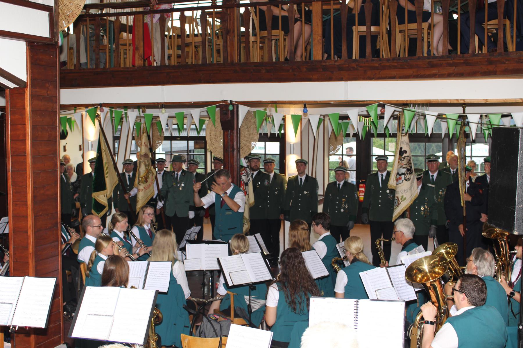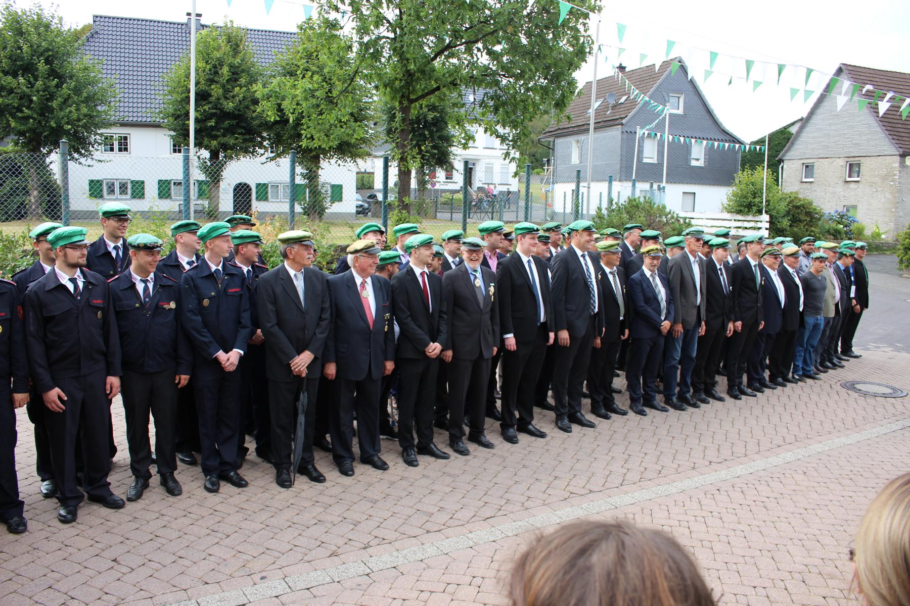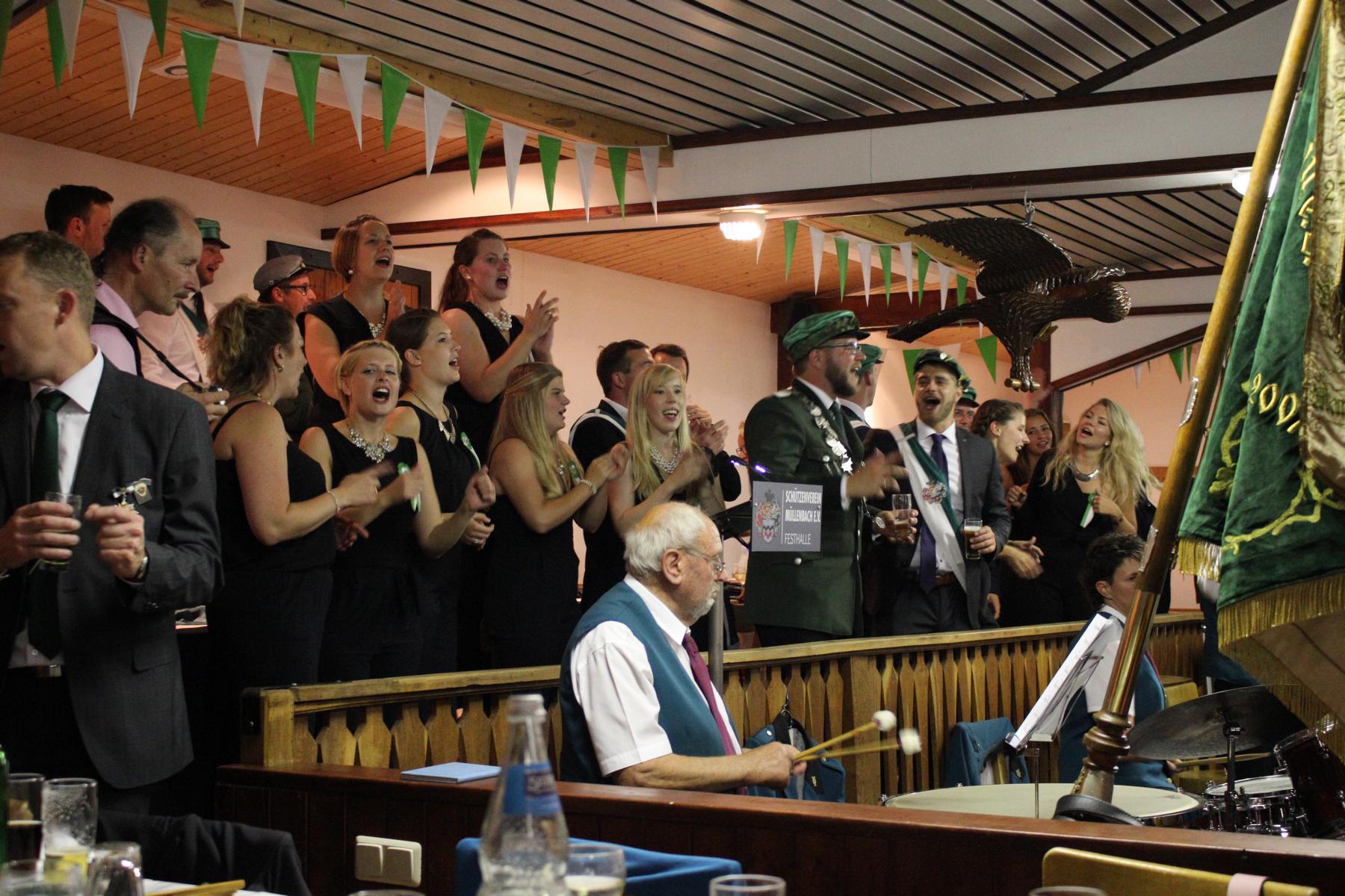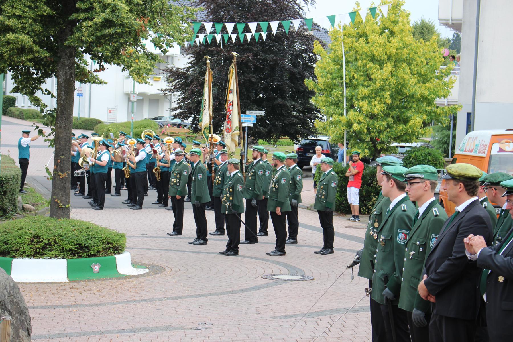 Bumm, Bumm, Bumm, Bumm, Bumm – Auf gehts zum 461. Schützenfest! Die Kanoniere haben die Dicke Berta wieder vorschriftsmäßig bestück, so dass pünktlich um 18:00 Uhr das Schützenfest 2018 eröffnet wurde. Zuvor hat der Musikverein Hoffnung Hünsborn mit einem abwechslungsreichen und kurzweiligen Platzkonzert die zahlreichen Besucher in der Dorfmitte bestens unterhalten. Aus Nah und Fern kamen die Schützen mit Ihren Familie zur Friedenseiche. Es folgten zahlreiche Gespräche bei bester Laune und deutlich erkennbarer Vorfreude auf die folgenden Festtage.