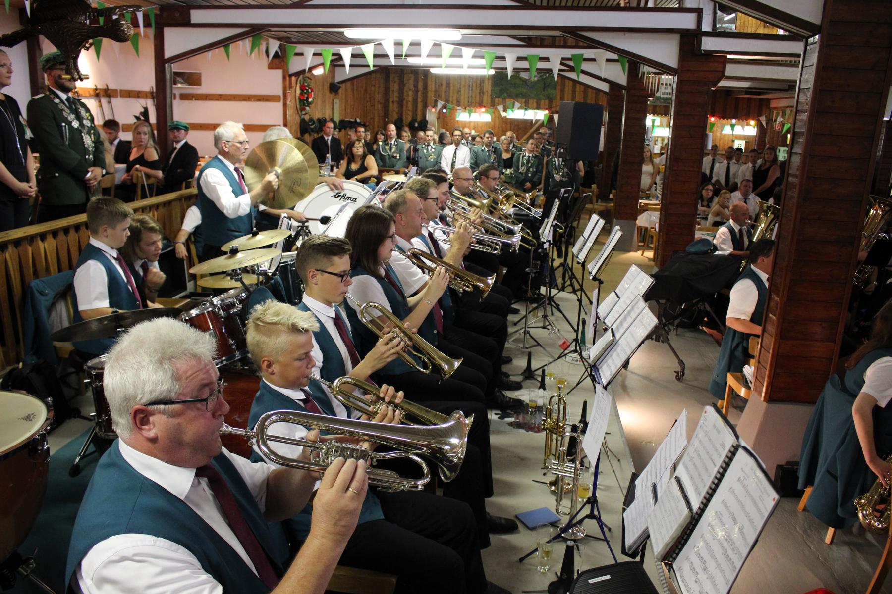 Zum Festkommers des 461. Schützenfestes hat sich die Festhalle mit über 250 Personen gefüllt. Der erste Vorsitzende, Reiner Schenk begrüßte die amtierende Müllenbacher Majestät Dennis I. aus dem Hause Montag und seine Ehefrau Stefanie mit dem Hofstaat unter der Leitung von Hofmarschall Julian Schenk und Jana Thiele. Von den zahlreichen Ehrengästen sei stellvertretend Bürgermeister Stefan Meisenberg genannt, der die Grüße von Rat und Verwaltung überbrachte. Von den benachbarten Vereinen waren die schützenköniglichen Majestäten von Marienheide, Michael Neumann mit Königin Lisa Nötzel, und das Prinzenpaar Moritz vom Hofe und Sarah Lohse mit Hofgefolge angereist. Die erste Schatzmeisterin der Marienheider Schützen, Ines Wölky, überbrachte die Grüße ihres Vereins mit wohl gesetzten launigen Worten, da der erste Vorsitzende, Sven Wottrich, leider verhindert war.