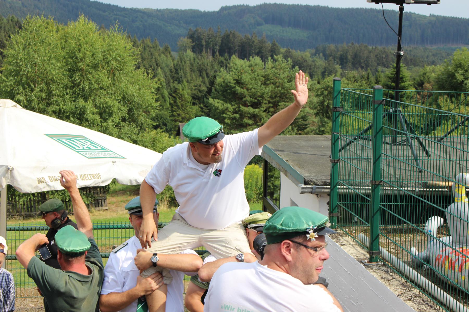Dieses änderte sich schlagartig, als sich der Vogel gegen viertel nach vier um annähernd 90 Grad im Kasten drehte. Bereits diesen gezielten Schuss hatte Sascha Hipler abgegeben und so war es letztendlich seine eigene Vorbereitung, die es ihm ermöglichte, einen Durchgang später den Königsschuss zu setzen. Die subjektive Wahrnehmung so vieler Schützenkönige der letzten Jahre, dass der Vogel in Zeitlupe zu Boden fiel, konnten in diesem Jahr auch die Zuschauer so tatsächlich wahrnehmen.