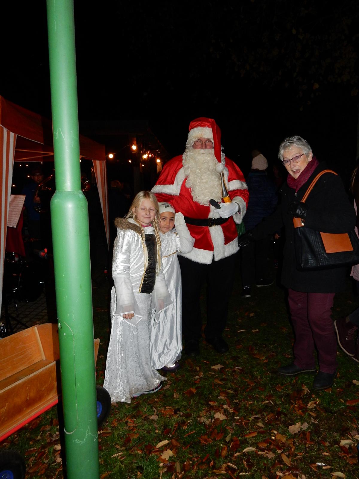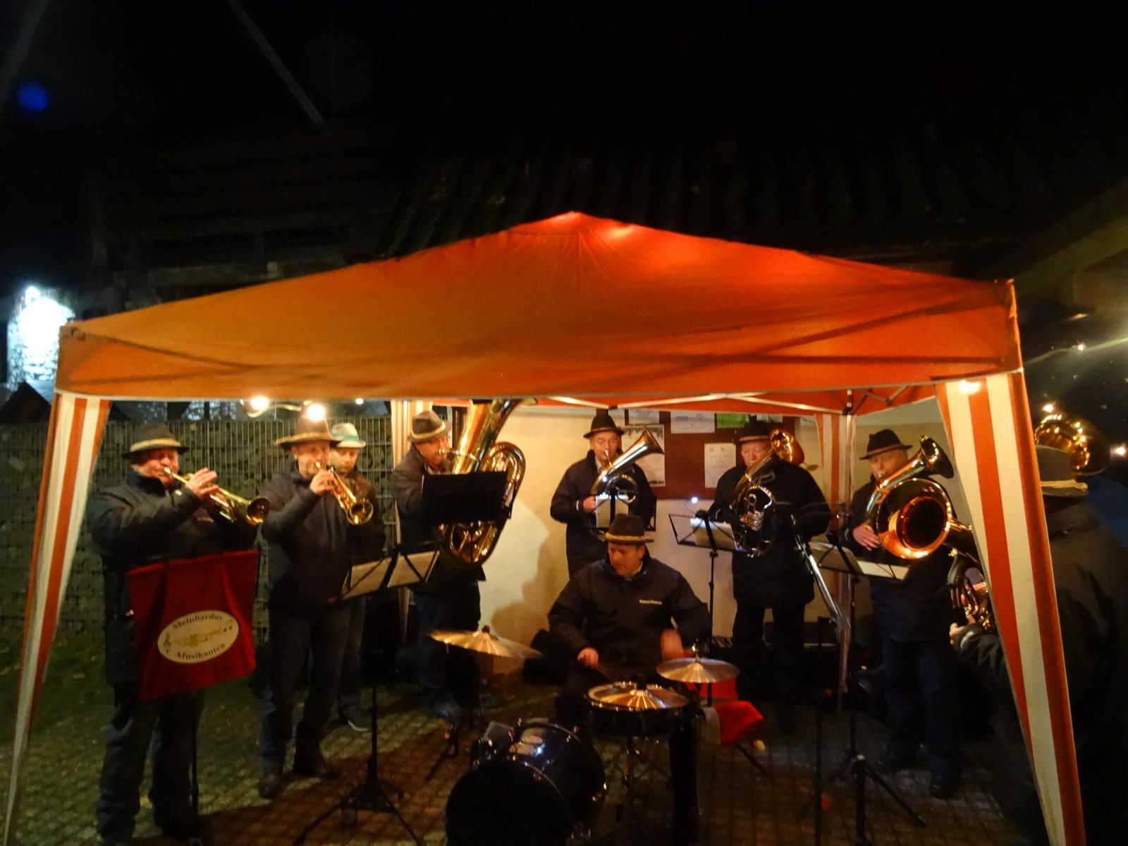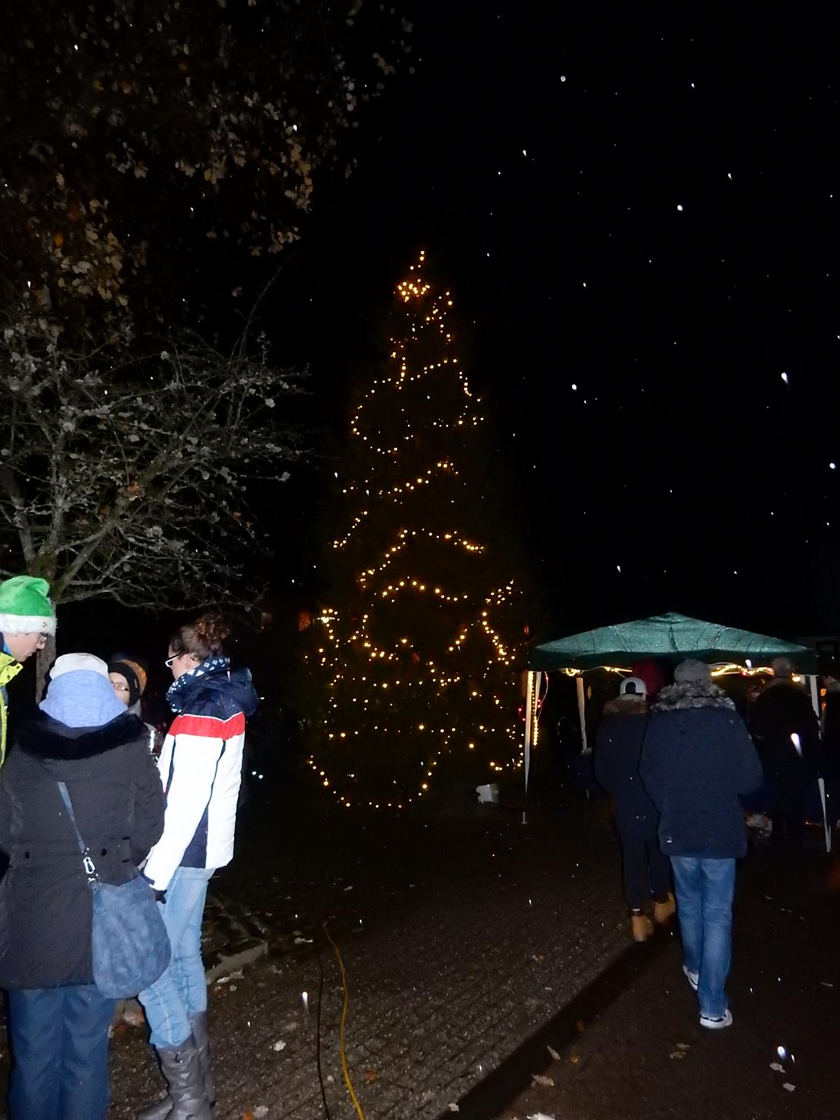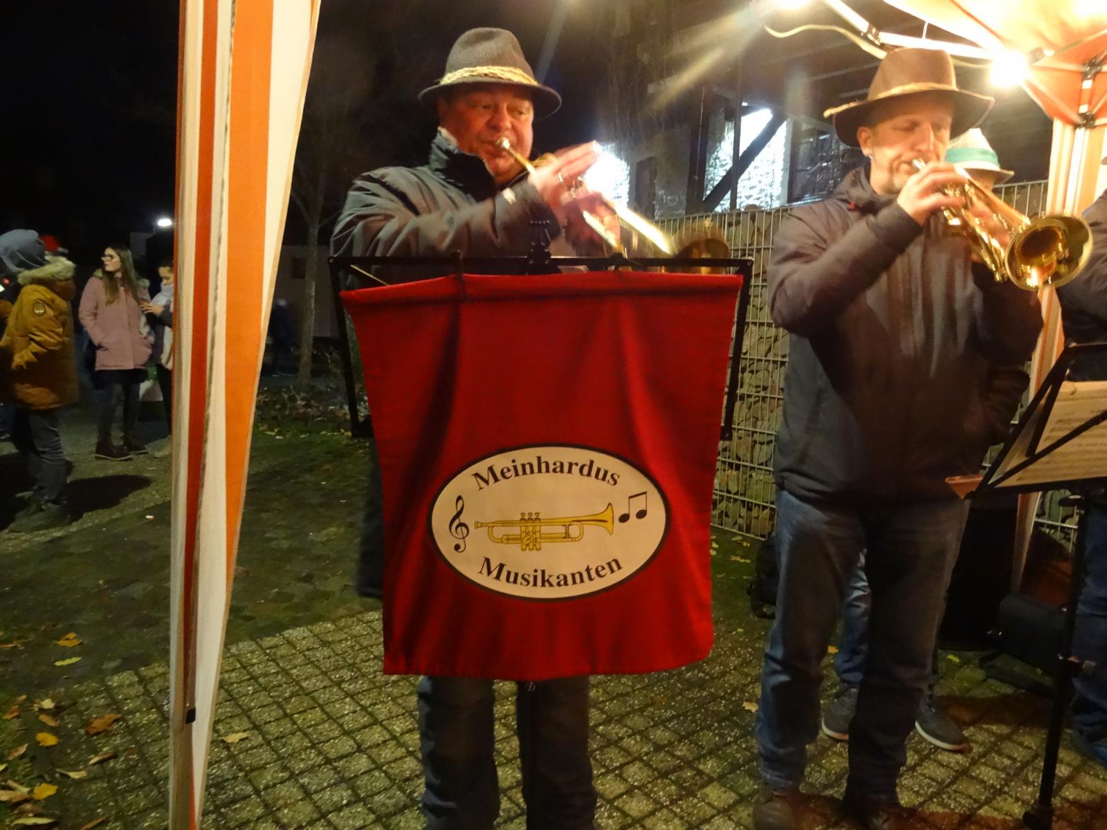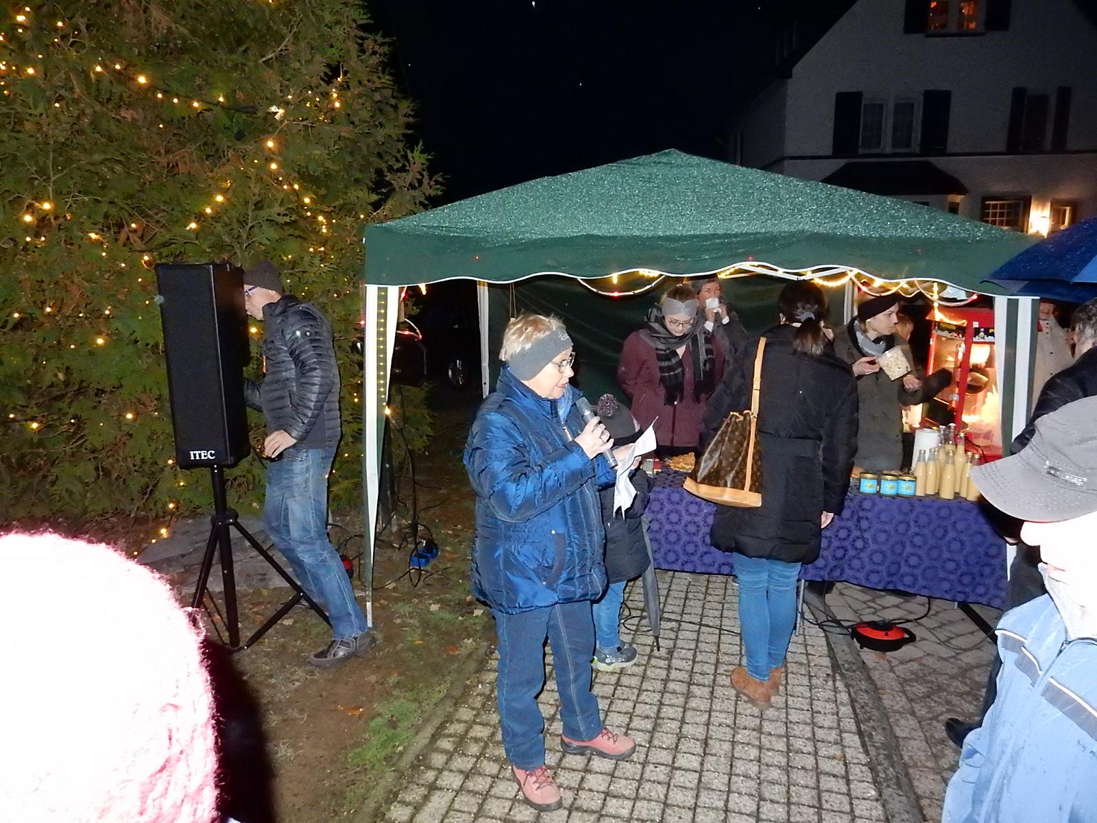 Als um kurz nach 17.00 Uhr der Weihnachtsbaum mit seinen vielen Lichtern erstrahlte und die Weihnachtslieder der Meinhardus Musikanten den Platz erfüllten, kam besinnliche Stimmung bei den über 300 Besuchern auf. Die erste Vorsitzende des gemeinnützigen Vereins, Susi Müller und Bürgermeister Stefan Meisenberg eröffneten mit kurzen Grußworten das Anknipsfest.