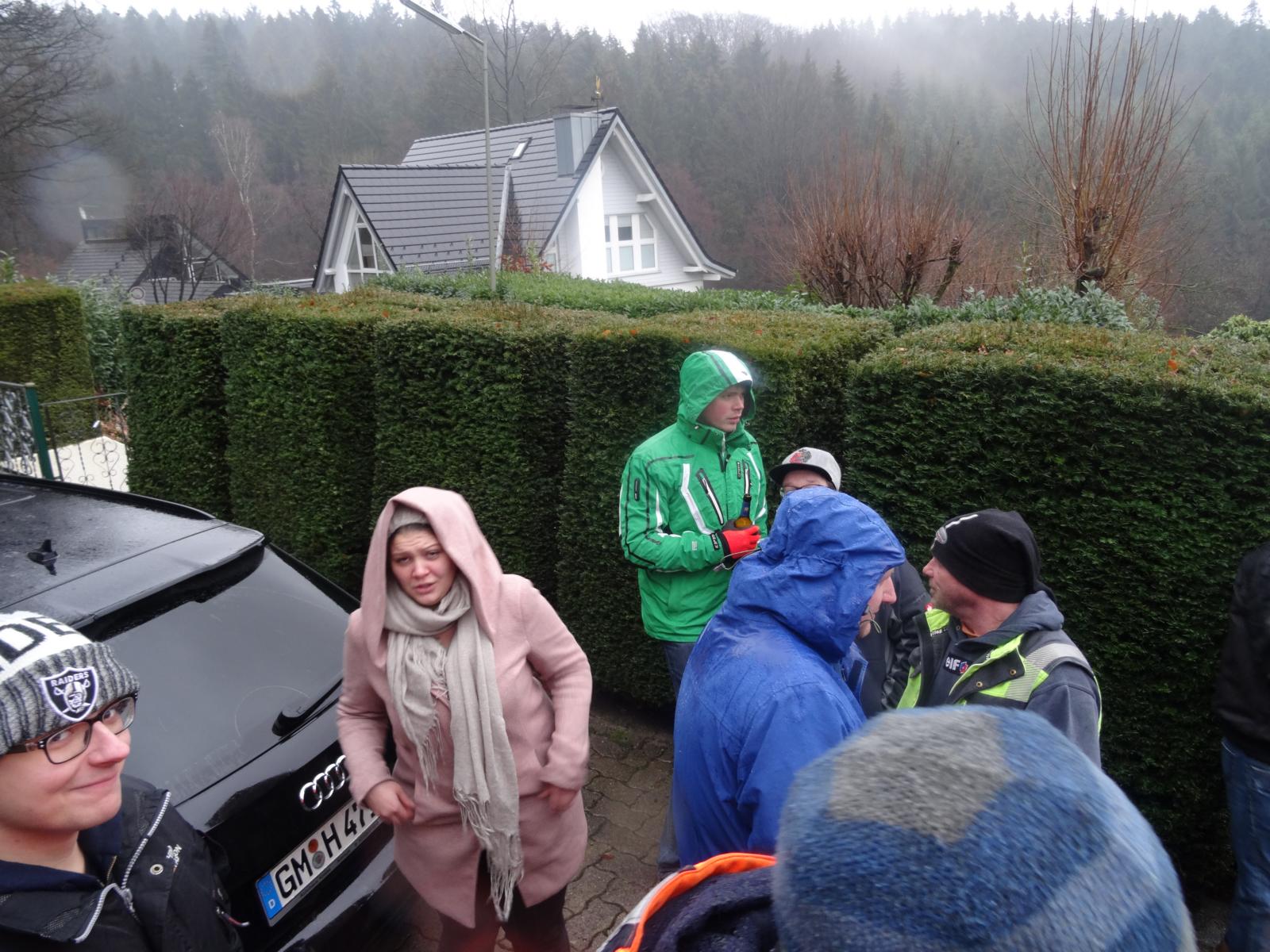 Im Unterdorf bis zur Friedenseiche und in der Schützen- und Gervershagener-Straße sowie der Vogelruthe waren seine Majestät König Sascha I. und seine Hofherren zusammen mit weiteren Schützenbrüdern fleißig. Im übrigen Teil des Dorfes waren ebenfalls 15 Schützenbrüder unterwegs. An nicht wenigen Häusern wurden die Schützen bereits erwartet und gut bewirtet. Die Wärme spendenden Kaltgetränke waren bei dem regnerischen und fast stürmischen Wetter auch mehr als hilfreich, um drohenden Erkältungskrankheiten vorzubeugen. Ein Haushalt versuchte erfolgreich sich um die Herausgabe des Christbaums und einer Spende zu drücken, indem er die Edeltanne noch geschmückt im Wohnzimmer stehen ließ, wovon sich die Schützenbrüder auch persönlich überzeugen durften.