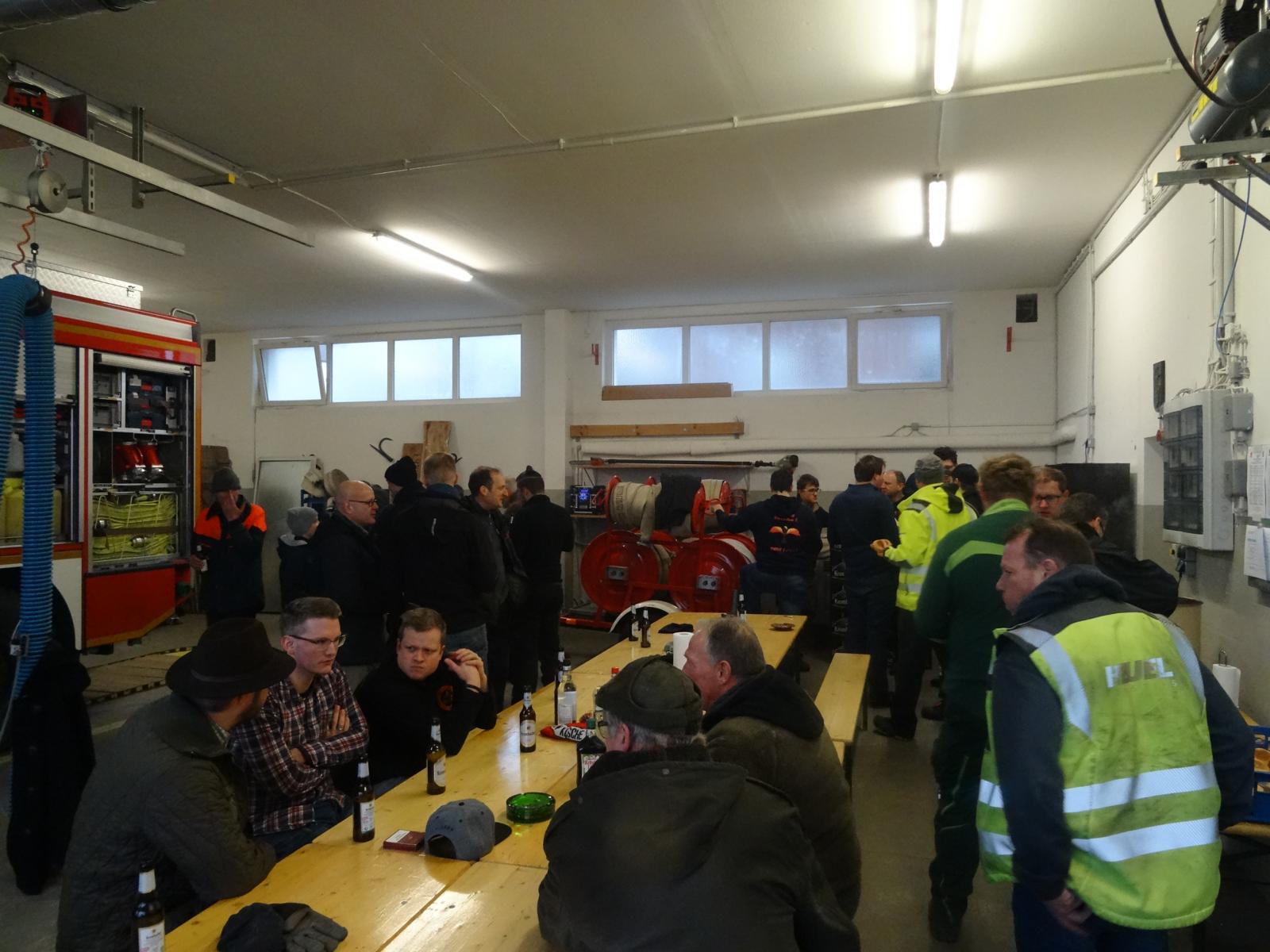 Wenn auch nicht vor jedem Haus ein Baum zum Abholen bereit lag, konnten am Nachmittag ca. 130 Bäume und Spenden in Höhe von gut 800,- € gezählt werden. Das Geld wird für die Jugendarbeit im Verein verwendet. Während in den letzten Jahren die Entsorgung durch Schreddern erfolgte, dient das Gehölz in diesem Jahr als Grundlage für das Osterfeuer am Schießstand. Seine Majestät König Sascha I. hatte zum Ausklang in das Feuerwehrhaus eingeladen, wo bei Bier, wärmenden Kaltgetränken und Brühwurst die nassen und eingefrorenen Lebensgeister wiederbelebt wurden. Der erste offizielle Termin des Vereinslebens im neuen Jahr war wieder einmal ein Erfolg und es bleibt nur allen Beteiligten, hier insbesondere den Treckerfahrern und den Spendern, zu danken. Horrido!
