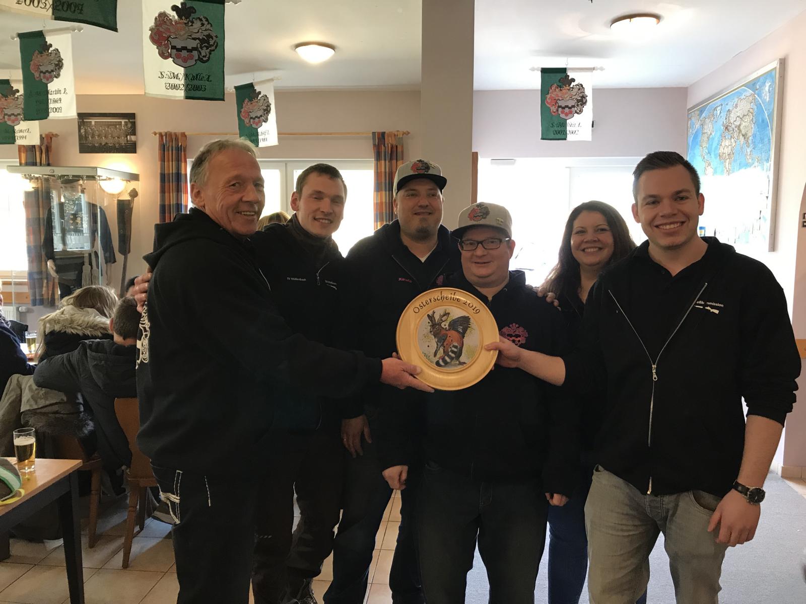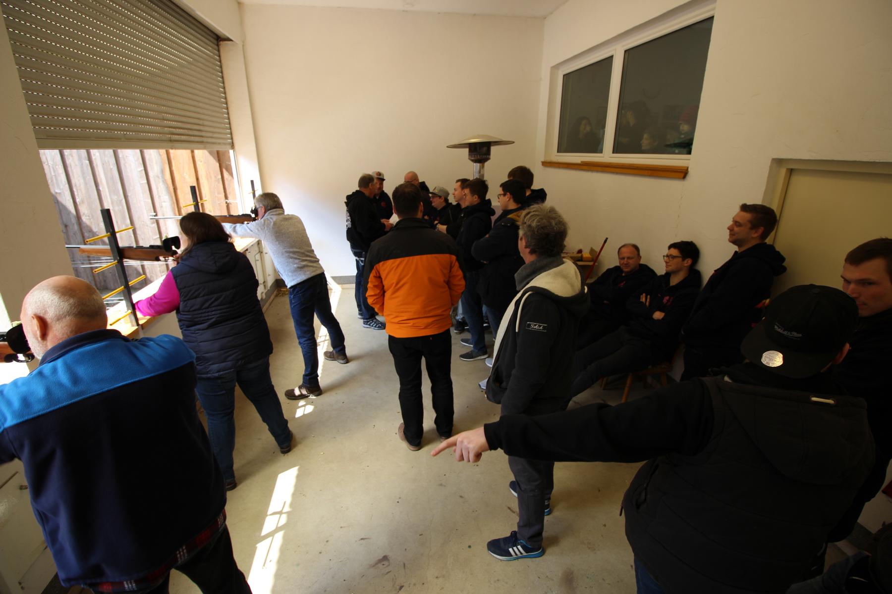 Seine Majestät König Sascha mit seiner Königin Eva aus dem Hause Hipler war mit dem nahezu vollständigen Hof erschienen. Aus gutem Grund: Galt es doch für den Schützenhof gegen die Schießkommission um die Osterscheibe in den Wettkampf zu gehen. Den dritten Platz sicherte sich der Hofmarschall Willi Wendt, den zweiten Platz der Vogelbauer und gleichzeitig auch Mitglied der Schießkommission, Felix Niehaus. Auch der erste Platz blieb in den Reihen der Schießkommission: Marius Schulz war überlegen der beste Schütze. Das sonnige, wenn auch windkalte Wetter machte das Verweilen vor der Tür an der frischen Luft zumindest zeitweise möglich und sorgte so für eine lockere Biergartenatmosphäre.