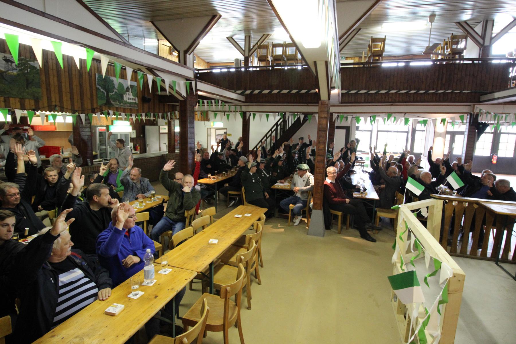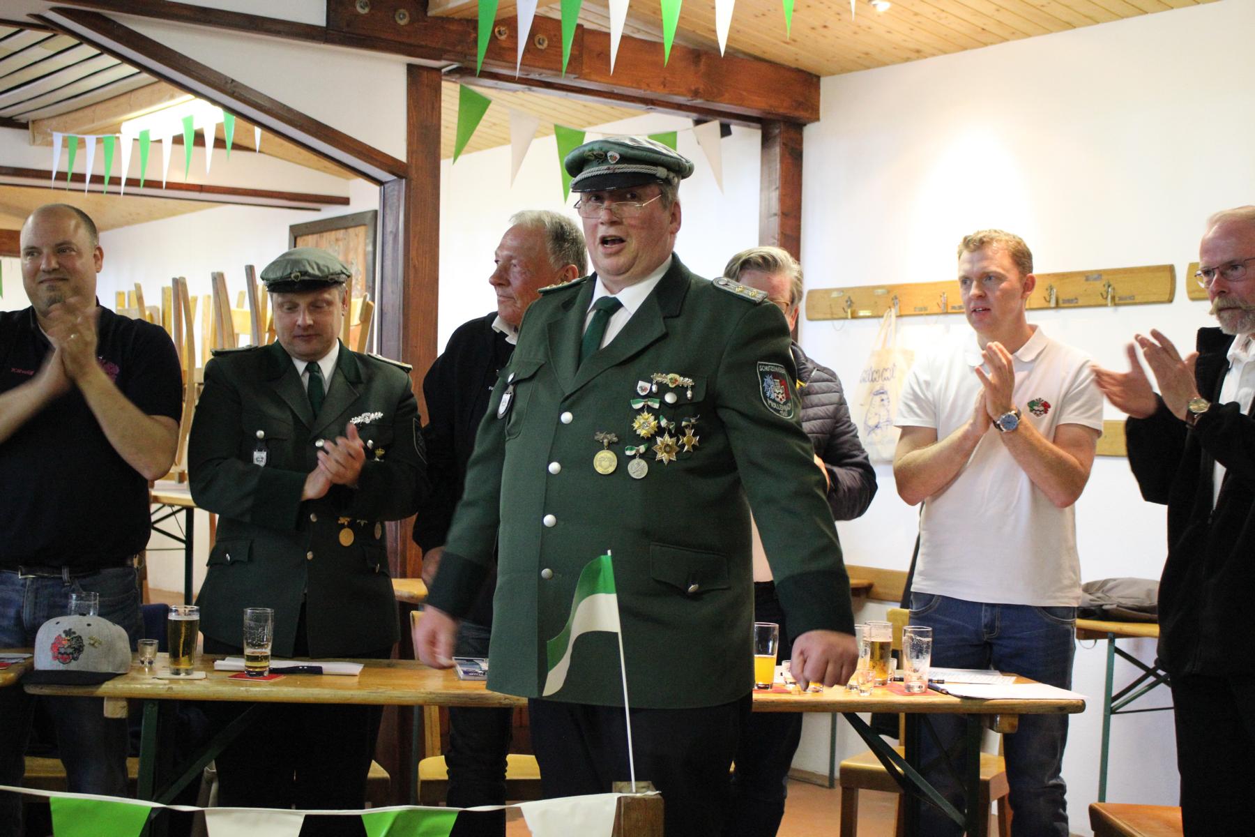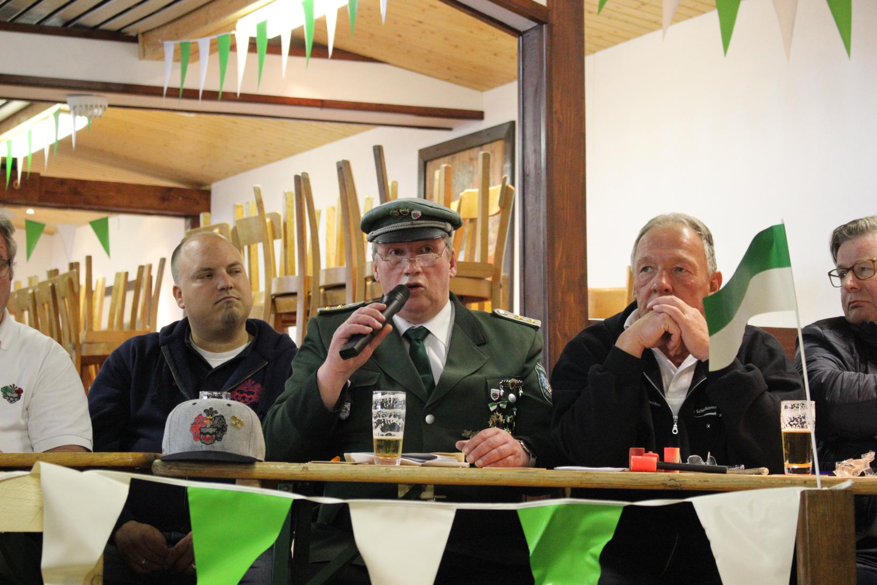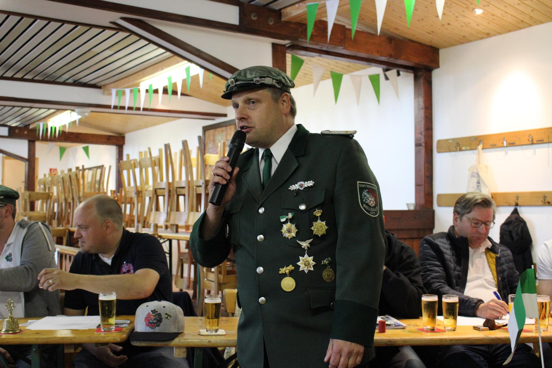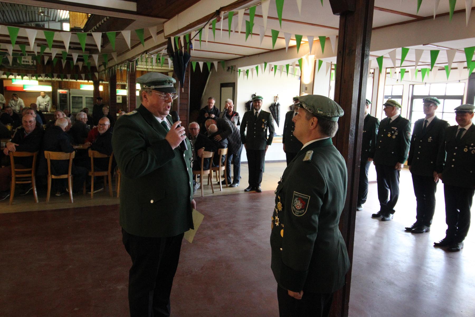 Die diesjährige Generalversammlung kann als historisch eingestuft werden. Bei den regulären Vorstandswahlen standen zwei die Geschicke des Vereins in den letzten Jahren maßgeblich beeinflussende Schützenbrüder nicht mehr zur Wiederwahl zur Verfügung. Der erste Vorsitzende, Reiner Schenk, und der über die Ortsgrenzen hinaus bekannte Hauptmann Matthias Pack haben ihre Verantwortung abgegeben. Reiner Schenk war 25 Jahre Vorstandsmitglied, davon 12 Jahre in der Funktion des ersten Vorsitzenden. In der Jugend aktiver Sportschütze, 1993 Schützenkönig. Der Schützenverein war für ihn immer mehr als nur ein Hobby. Matthias Pack wurde mit 24 Jahren 1983 zum damals jüngsten Offizier gewählt. Seit 2003 ist er als Hauptmann verantwortlich für die Offiziere und Fahnenträger, die dann zum heutigen Offizierskorps vereinigte. Spätestens beim jährlichen Schützenfest konnte jeder sehen, dass Matthias Pack sein Amt mit ganzer Körperfülle lebte.