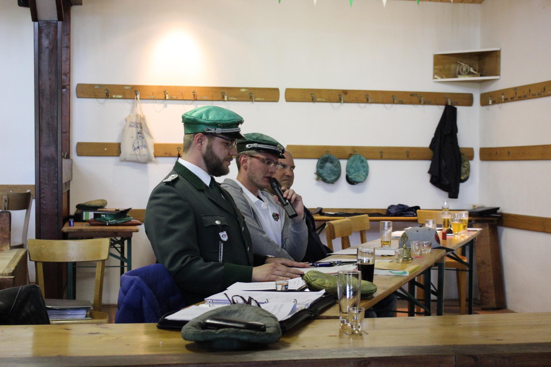 Die versammelten 100 Schützen wählten Carl-Christoph Pietschmann (30) einstimmig zum neuen ersten Vorsitzenden. Mit seinem wiedergewählten Stellvertreter, dem zweiten Vorsitzenden Dennis Montag (30), wird im Vorstand die junge aktive Generation nunmehr die Geschicke des Vereins gestalten. Der geschäftsführende Vorstand wird durch den Hauptkassierer Stefan Betat und dem Geschäftsführer Holger Bahs komplettiert. Thomas Schenk (52) wurde einstimmig zum Hauptmann gewählt. „Matthias, ich weiß, dass Du große Spuren hinterlässt, aber ich bin mir sicher, dass da noch Platz genug ist, um meine eigenen daneben zu setzen“. Mit diesen Worten würdigte Thomas Schenk nach seiner Wahl selbstbewusst seinen Vorgänger. Im Anschluss wurde Thomas Schenk vom scheidenden Matthias Pack zum Hauptmann befördert. Als Anerkennung der für den Verein geleisteten Arbeit wählte die Versammlung Reiner Schenk zum Ehrenvorsitzenden und Matthias Pack zum Ehrenhauptmann.