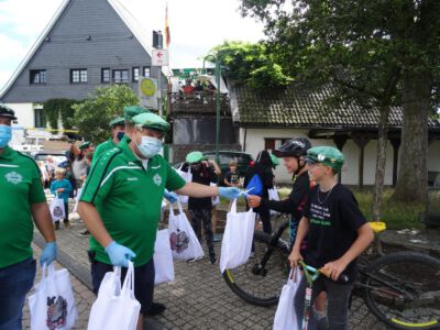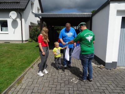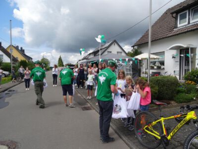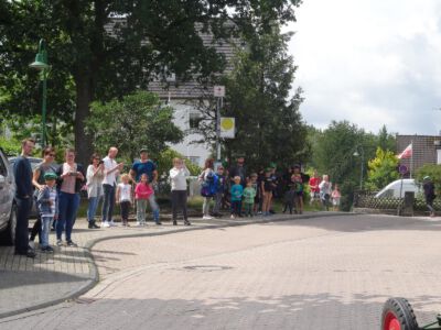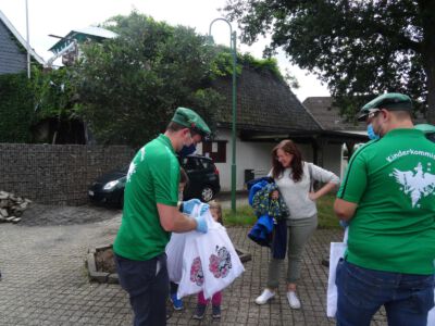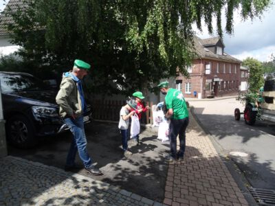 Für die notwendige Schützenfestatmosphäre sorgte Marschmusik aus der auf dem Anhänger installierten Musikanlage. Für Torsten Klein als Leiter der Kinderkommission und seine Mitstreiter waren die sich freuenden Kinder und Eltern der beste Beweis für eine gelungene Aktion. Zu danken ist der Firma K.H. Selbach Ing. GmbH für ihre Unterstützung durch die Bereitstellung von Wappenstickern für die Überraschungsbeutel.