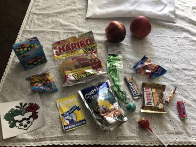 Der Kinderschützenkönig 2019, Luis Ramser, und seine Königin Chiara Eck konnten heute zusammen mit sechs Schützenbrüdern der Kinderkommission eine Rundfahrt durch das Dorf starten. Von einem geschmückten Anhänger, der von Olaf Hinzes Trecker gezogen wurde, verteilten die beiden Majestäten Überraschungsbeutel an die in den Straßen auf sie wartenden Kinder. 130 von Ihnen hatten sich zuvor online angemeldet, um die reichlich gefüllten Leinentasche zu bekommen.