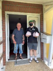 Zeitgleich trafen sich am Schießstand die Damen des Schützenhofes, um die zahlreichen Kuchenbestellungen zu verpacken. Die Senioren hatten von dem Angebot des Schützenvereines regen Gebrauch gemacht und über 100 Kuchenstücke für den Sonntagsnachmittagskaffee bestellt. Egal ob in Windhagen, auf dem Dannenberg, in Schemmen oder Dahl oder auch an der Brucher – überall wurden die Leckereien freudig und dankbar entgegengenommen.