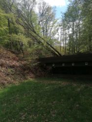 Die Blenden der Schießbahnen am Schießstand „Am Brecher“ waren im Frühjahr durch im Sturm umgefallene Bäume schwer beschädigt worden. Die Fachleute der Schießkommission kamen bei der Untersuchung des Schadens zu dem Schluss, dass sich alles schnell wieder reparieren lässt. Allerdings stellte der noch stehende Baumbestand auf dem angrenzenden Gelände der Basalt AG ein erhebliches Risiko dar, bei entsprechender Sturmlage größere und sicherheitsrelevante Schäden an der Schießanlage zu verursachen. Der geschäftsführende Vorstand holte sich darauf die Zustimmung der Basalt AG ein, alle potentiell gefährdenden Bäume fällen zu dürfen.